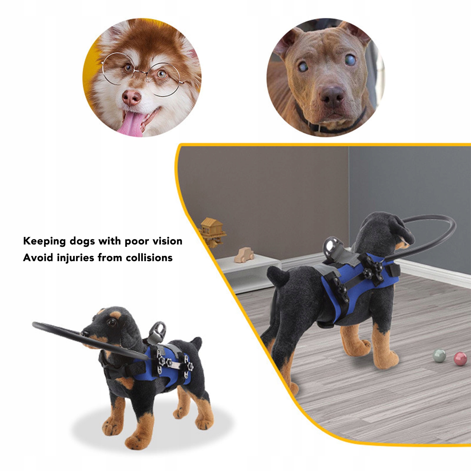 4. Обеспечение безопасности: защита бампера для слепых собак помогает слепым собакам сохранять мобильность и высочайшее качество жизни, обеспечивая при этом их безопасность и отсутствие несчастных случаев.