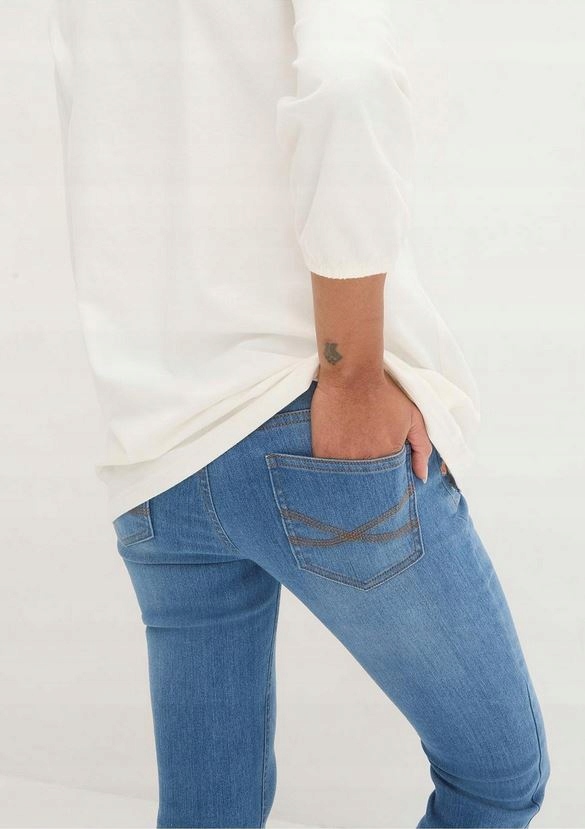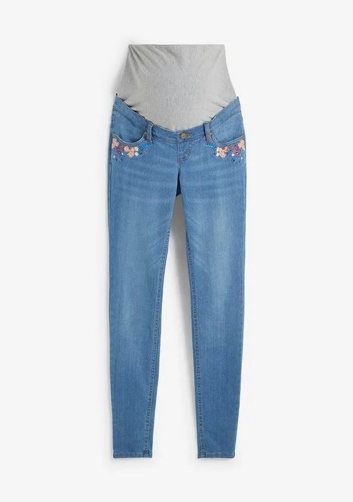брюки для беременных из коллекции Bon Prix в blue-, как на изображениях ниже описания, удобная вырез, нога сузилась вниз. С поясом беременности. Вышивка на передних карманах.