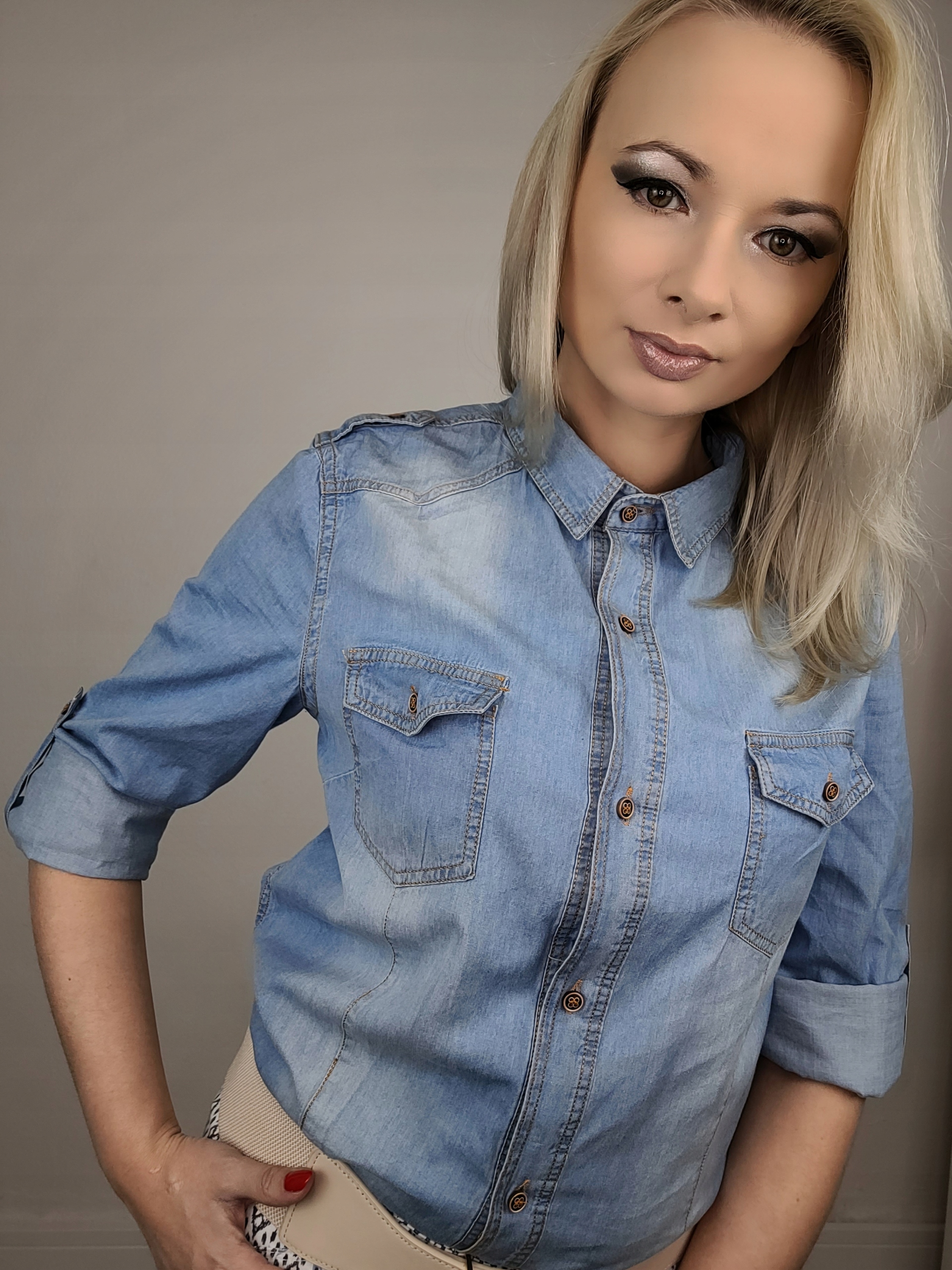 Классическая, неподвластная времени джинсовая рубашка с воротником. Застегивается на пуговицы спереди. Аккуратно приталенные длинные рукава с манжетами на кнопке, которую можно подвернуть и застегнуть.