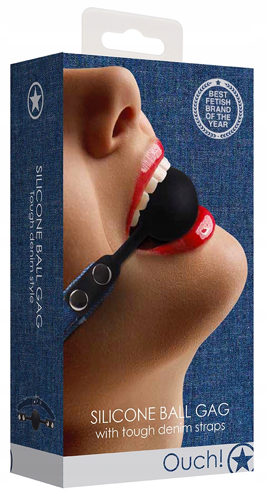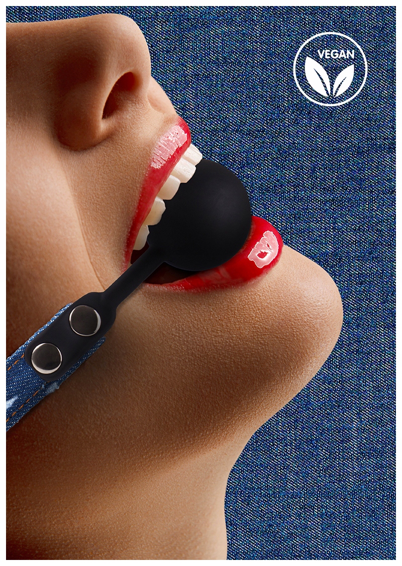 Вы покупаете ➪ Силиконовый шариковой кляп - с грубыми джинсовыми ремнями - синий