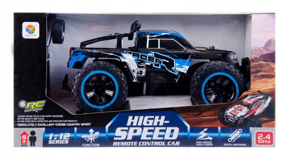 Управление машиной осуществляется с помощью джойстика. Может двигаться во всех направлениях. Благодаря большим колесам и внедорожной подвеске автомобиль отлично держит сцепление с любой поверхностью. Он также не боится крутых поворотов и ухабистых дорог. Игрушка из пластика и резины.