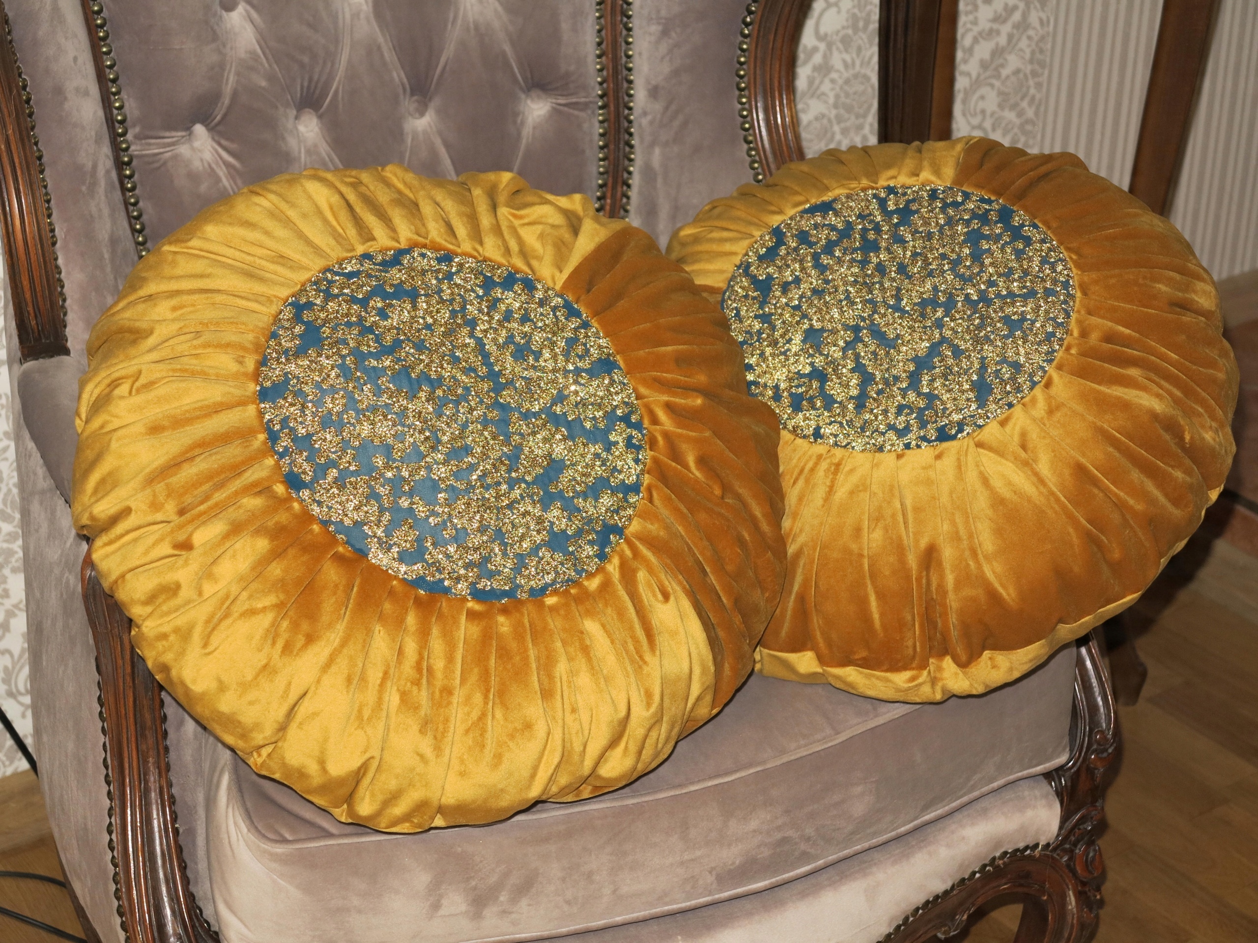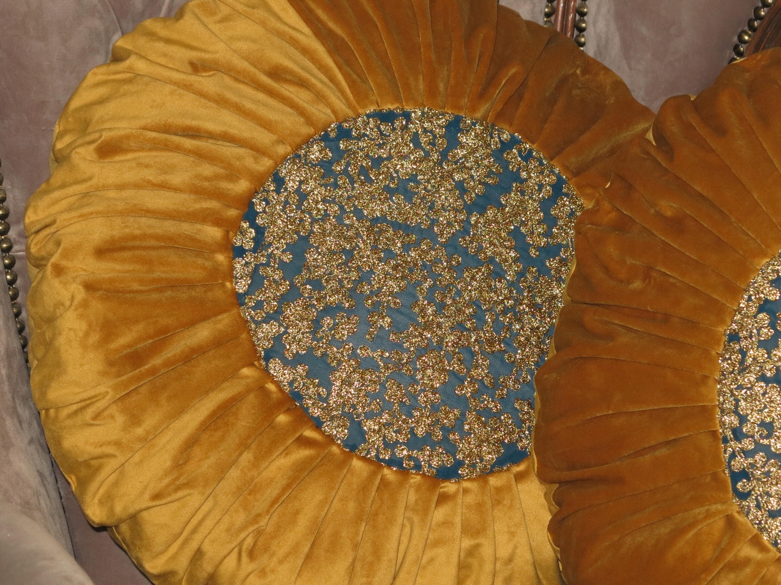 ВЫСОКОКАЧЕСТВЕННЫЕ БАРХАТНЫЕ ПОДУШКИ ИЗ АНТИЧНОГО ЗОЛОТА. ЦЕНТР ВЫШИВАН МЕТАЛЛИЗИРОВАННОЙ ЗОЛОТОЙ НИТЬЮ