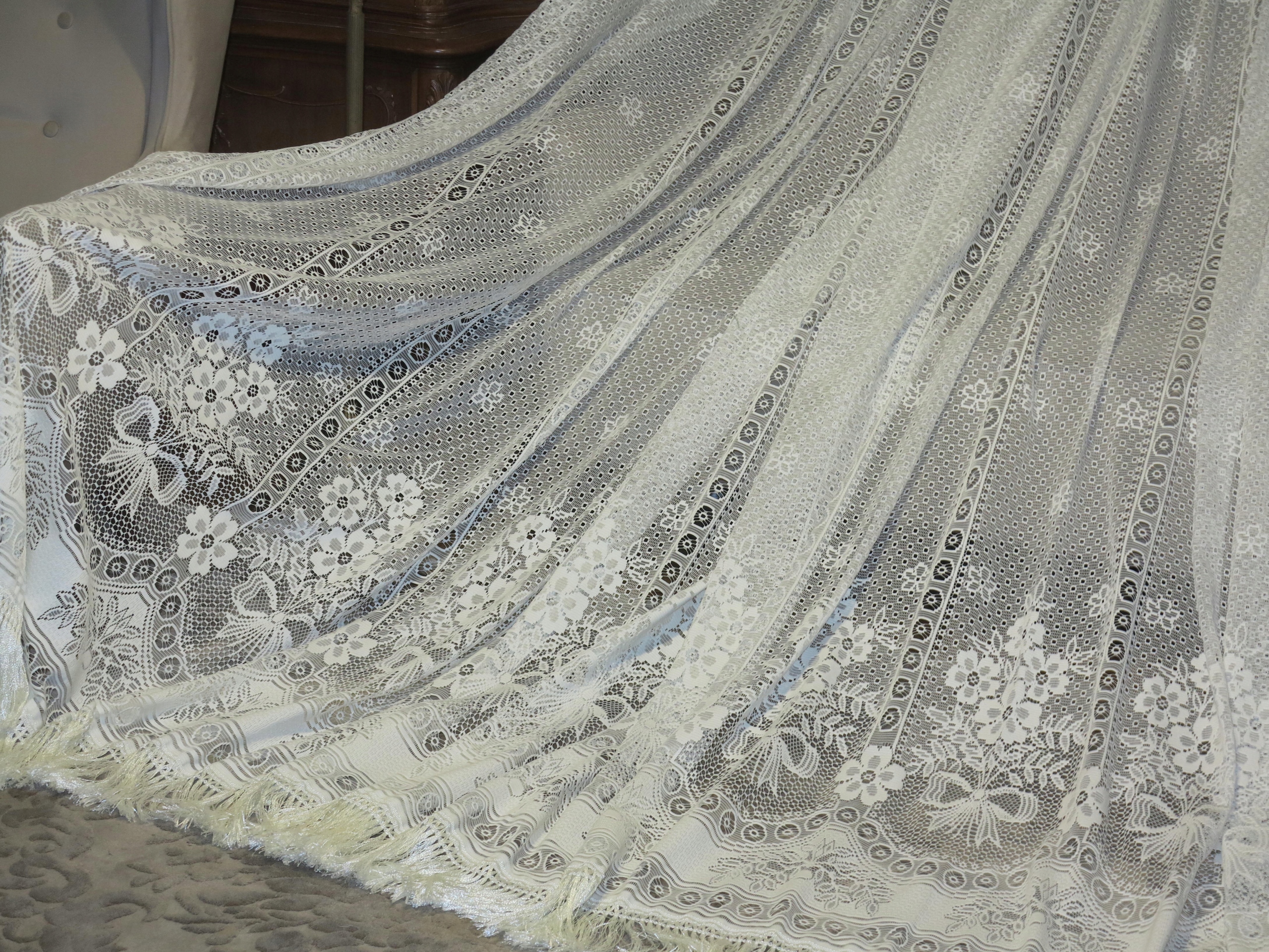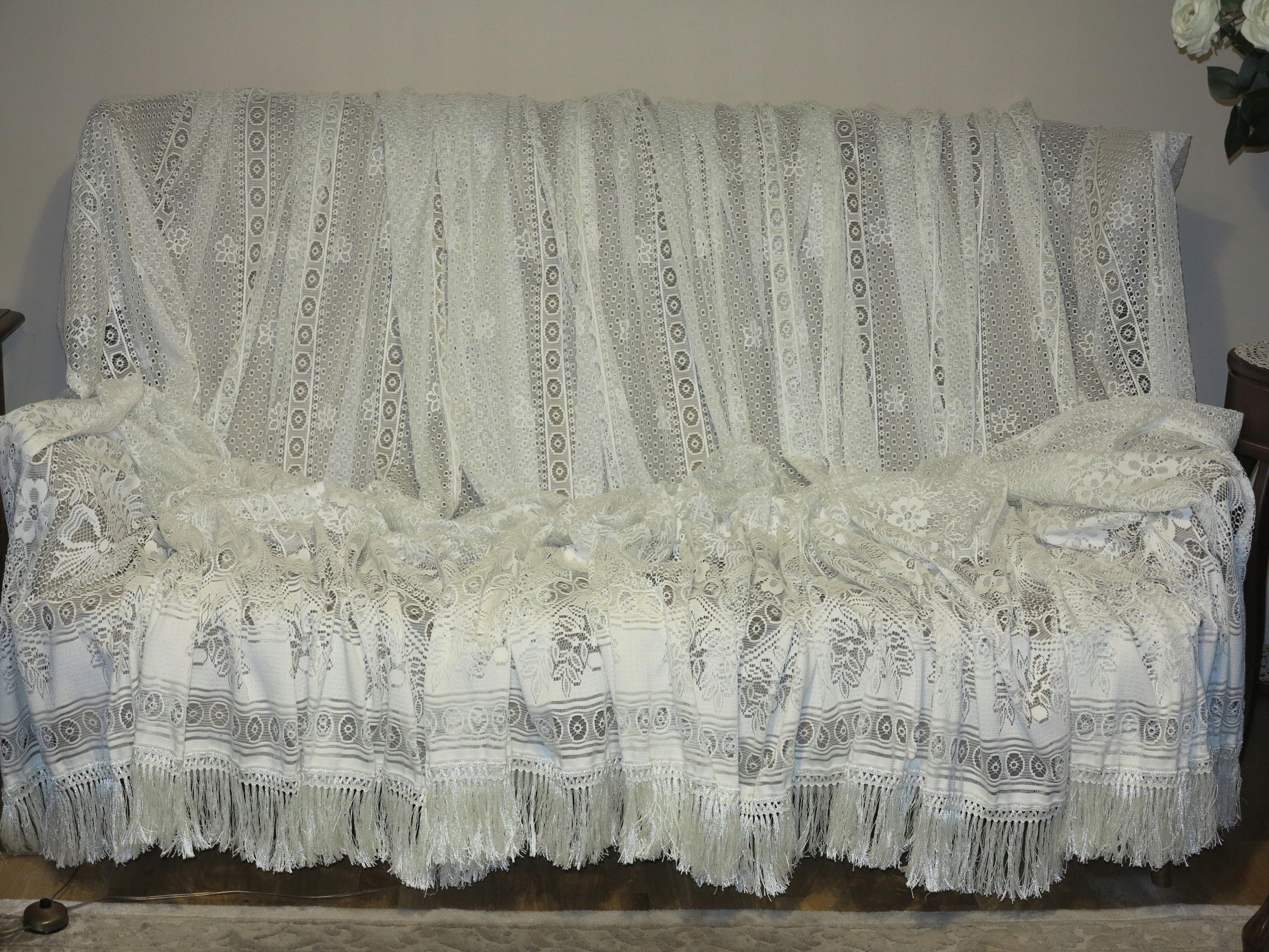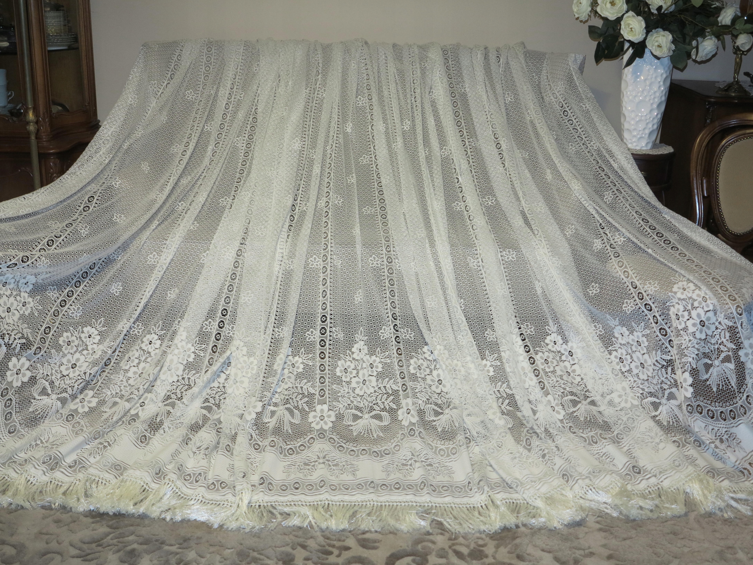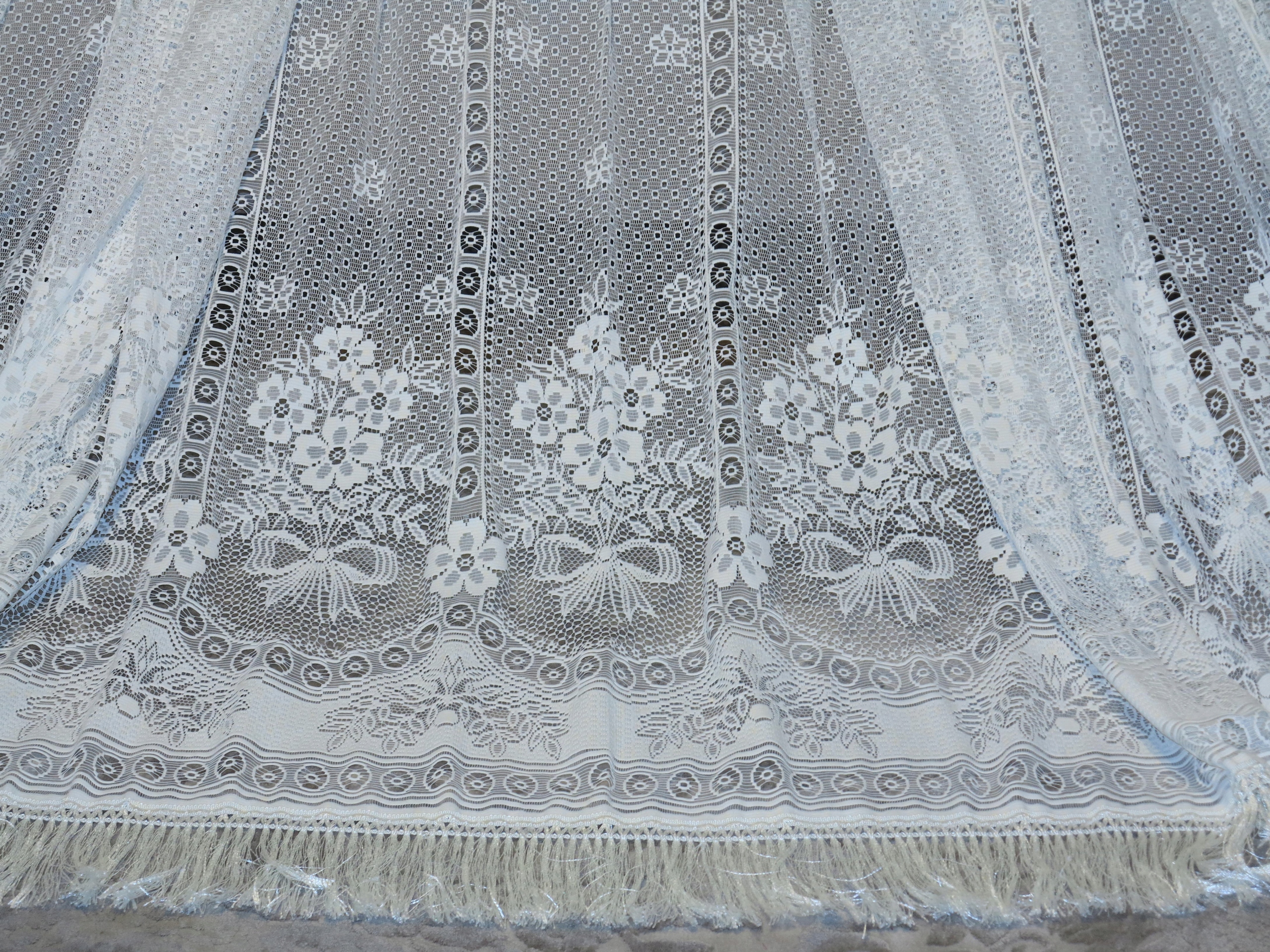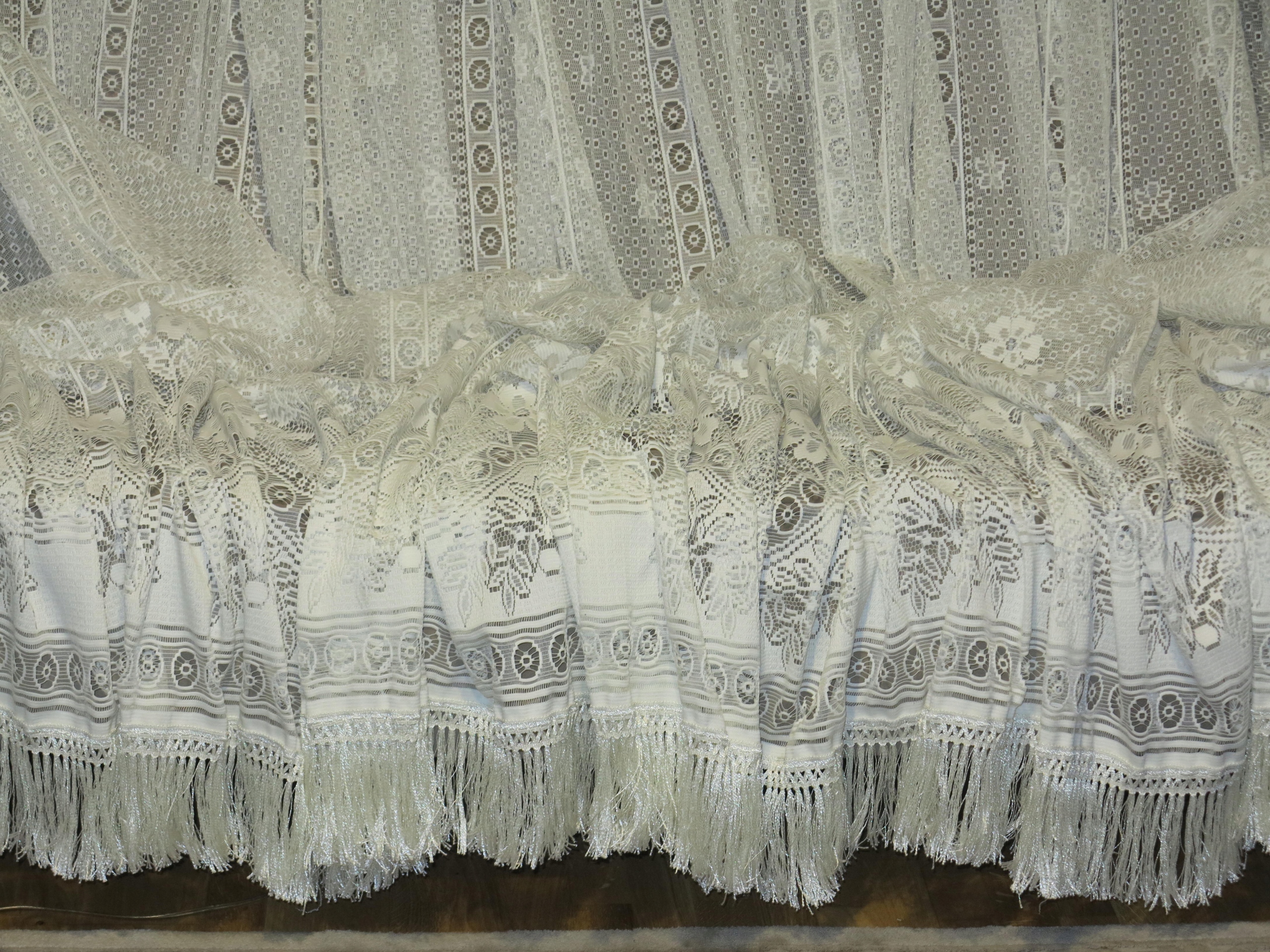 ДЛЯ АНТИКВАРИАТА - КРАСИВЫЙ ШИРОКИЙ И ВЫСОКИЙ СТАРИННЫЙ, ТОЛСТЫЙ ЖАККАРДОВЫЙ ШТОР С ДЕКОРАТИВНЫМ СТИЛЬНЫМ УЗОРОМ. ОЧЕНЬ ХОРОШЕЕ КАЧЕСТВО, НЕ ТРЕБУЕТ ГЛАЖИТЬ. НИЗ ОТКОНЧЕН ЖЕМЧУЖНОЙ ПОДКЛАДКОЙ С ДЛИННОЙ И ТОЛСТОЙ бахромой. ЦВЕТ: ЧИСТО-КРЕМОВЫЙ БЕЛЫЙ