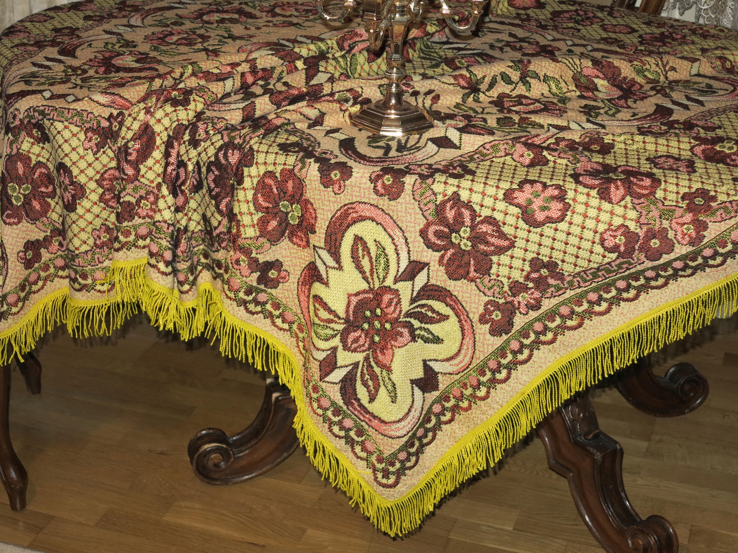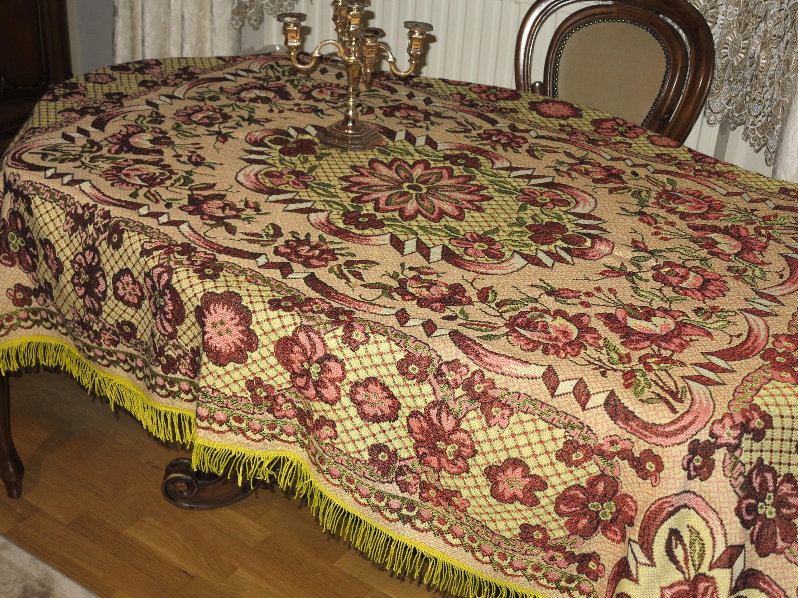 Предметом аукциона является красивая, стильная, очень большая гобеленовая скатерть или одеяло красивых цветов и узоров. Размеры скатерти: 200/147см плюс 6см бахрома. Скатерть б/у, в очень хорошем состоянии и качестве, несмотря на возраст. Рекомендую, прекрасное украшение для стильного интерьера.