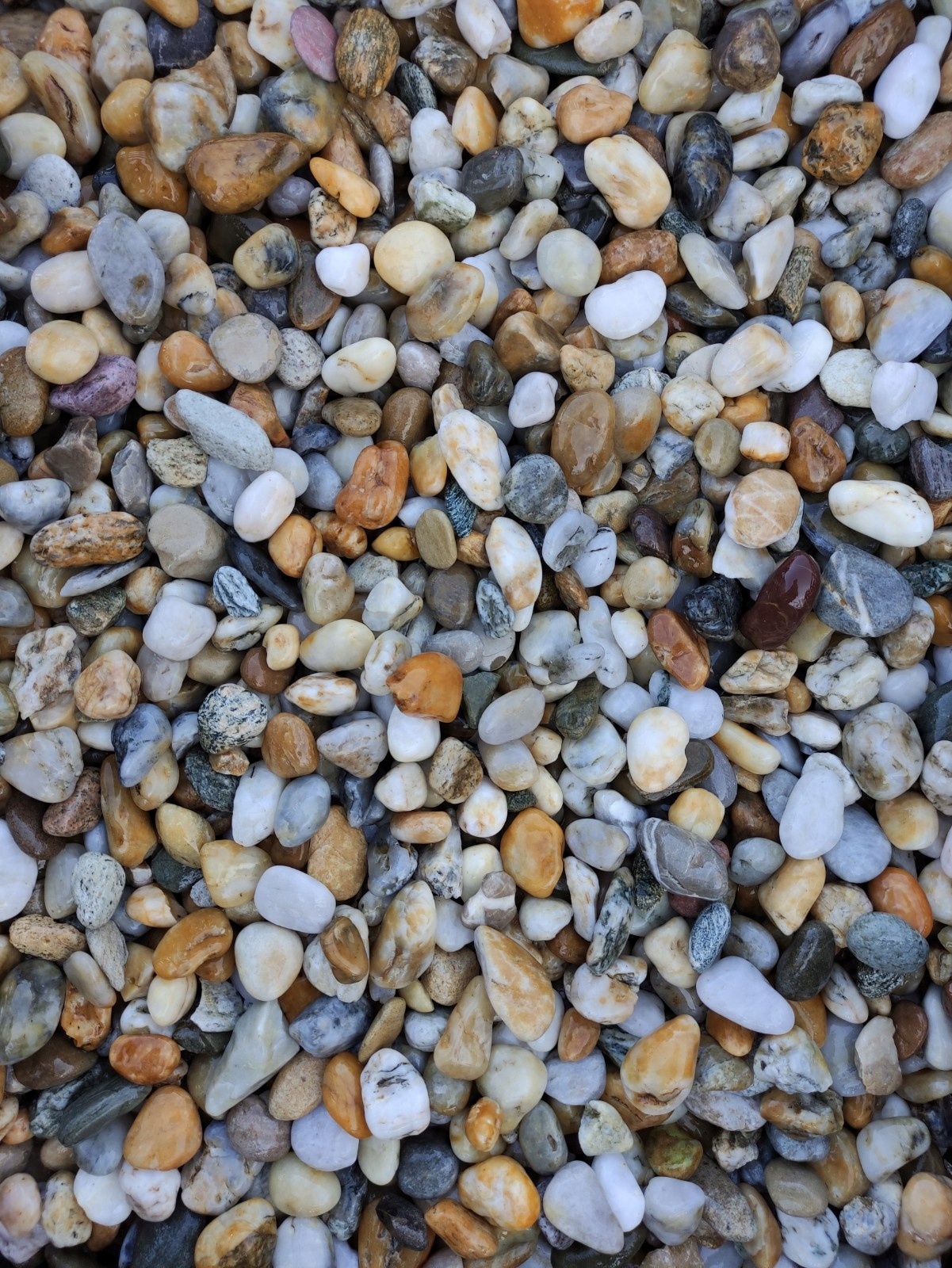 Импортная натуральная, неокрашенная медовая галька с преобладающей фракцией 16-22 мм, упаковка 1 кг.