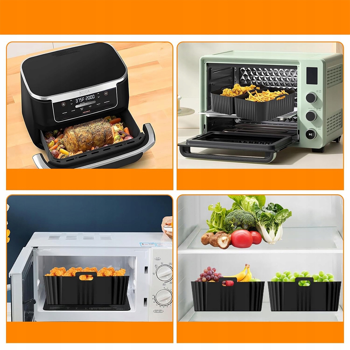 - ✅【Аксессуары повышенной емкости для Ninja AF500EU подробнее удовольствие】Наши силиконовые модели на 3 см выше традиционных вставок обладают большей вместимостью, что позволяет готовить несколько блюд одновременно и идеально подходят для совместного обеда всей семьей.