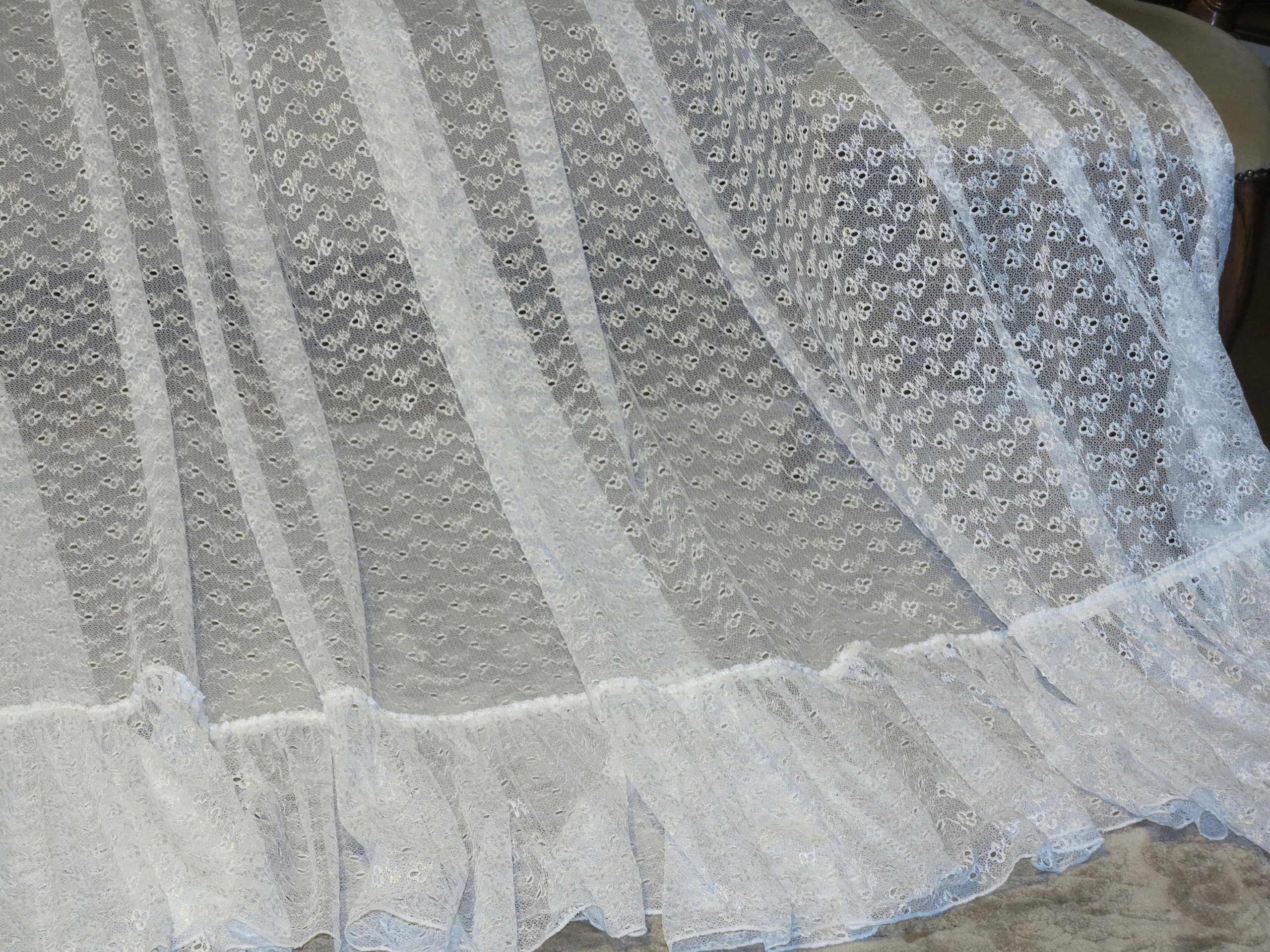 В ПОМЕСТЬЕ - ЧРЕЗВЫЧАЙНО ОЧАРОВАТЕЛЬНЫЙ БЕЛЫЙ КРУЖЕВНОЙ ЗАНАВЕС С ШИРОКИМ РАЛЛАНСОМ ШИРИНОЙ 38 СМ ВНИЗУ.