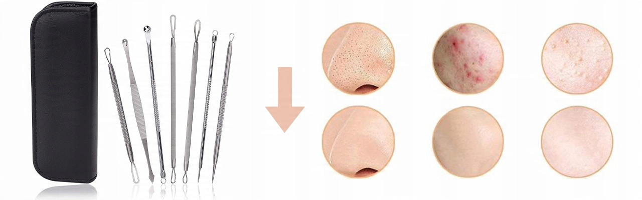 Набор состоит из 7 двусторонних ложечек для безопасного удаления черных точек, черных точек и прыщей.