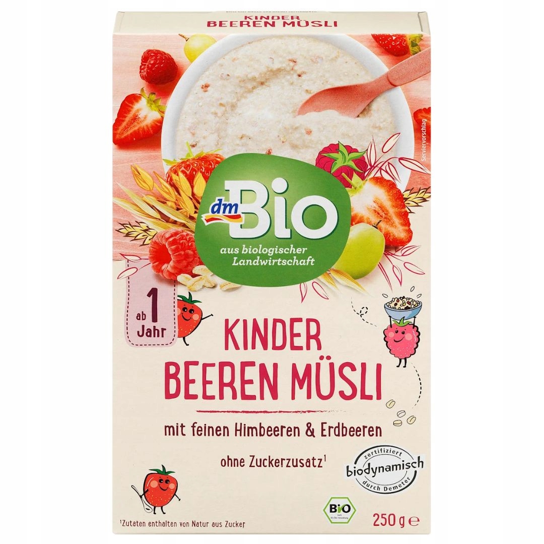 Вкусные здоровые зерновые мюсли для молока представляют собой полную полезную здоровую и полную еду или закуска, полная витаминов и минералов. Идеально подходит для завтрака, что является основой хорошего дня. Мусли будет удовлетворять даже самого большого едока. Dmbio Muesli для детей - это базовая смесь тщательно выбранной определенные зерна . В рамках сбалансированной смешанной диеты она подходит для начала дня для малышей от 1 года. Он содержит цельнозерновую овсянку , хрустящие написанные хлопья и хрустящая клубника и малина. содержит восхитительные кусочки малины и клубники, вкуса с молоком или можно уточнить с помощью фруктовых банок Dmbio (например, яблоко с черникой) или тонко тертым яблоком