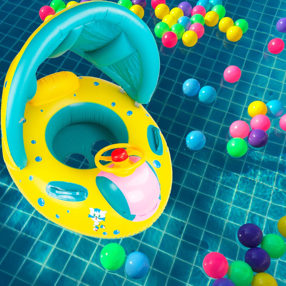 Теперь ваш малыш будет безопасно купаться вместе с вами. Понтон защищен от выпадения ребенка, специальные отверстия для ног позволяют сидеть в понтоне без необходимости держаться за руль. . Плавая, ребенок может играть с рулем или другими водными игрушками. Колесо оснащено козырьком, который защитит ребенка от солнца.