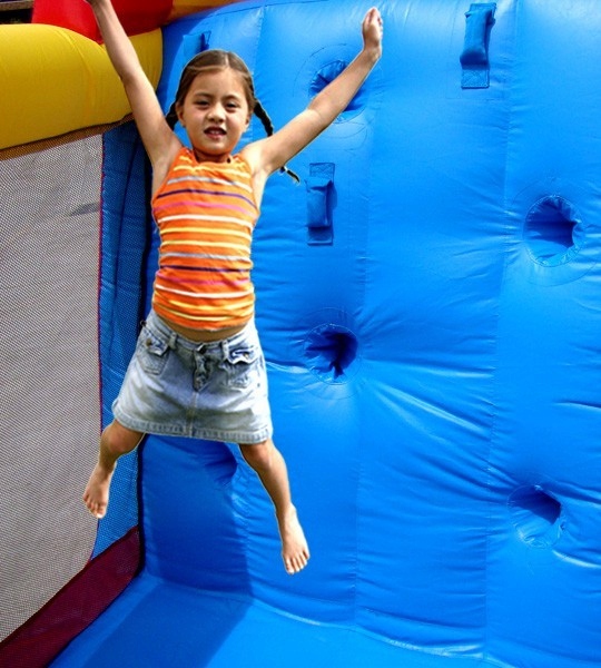 Надувная горка COMBO SLIDE оснащена одной горкой с двумя дорожками, туннелем и скалодром.