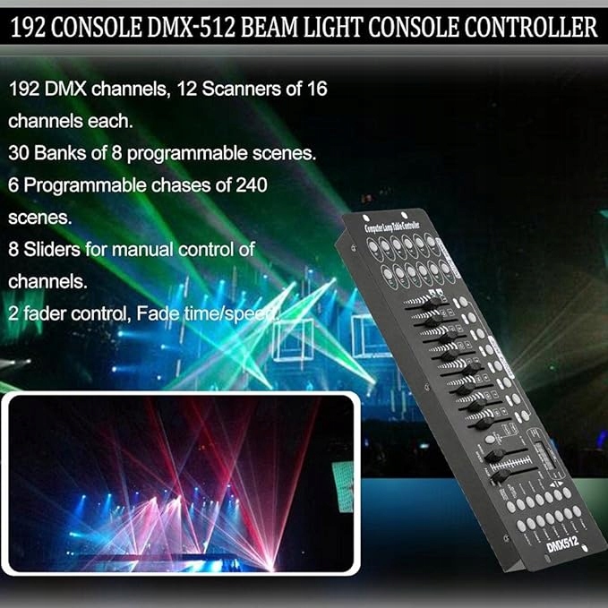 ★ Этот контроллер 192 представляет собой стандартный универсальный контроллер DMX512, управляющий до 192 каналами DMX. Благодаря контроллеру DMX вы сможете настроить световые эффекты так, чтобы они идеально соответствовали атмосфере и звуку вашего мероприятия.