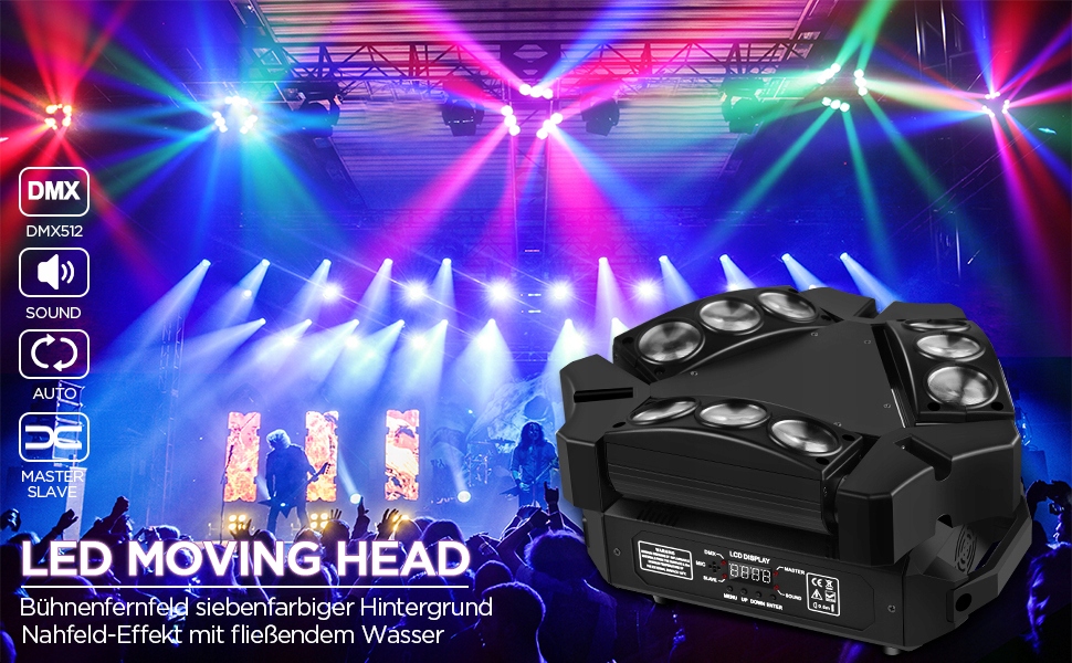 WZYBUTA Освещение для дискотек с подвижной головкой, 9 головок. Светодиодная подвижная головка DMX 512, освещение для DJ-вечеринок RGB, 7/13 каналов, освещение для дискотек для DJ-баров, клубов, световые эффекты, освещение сцены
