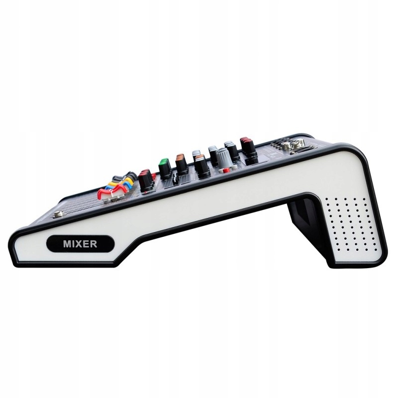 Каждая из четырех дорожек аудиоконсоли имеет несбалансированный вход LINE IN/MIC, предназначенный для ввода сигнала с высоким сопротивлением. Это может быть микрофон, а также проигрыватель, диджейский пульт или, например, клавишный инструмент. На уровне одной дорожки мы можем управлять такими параметрами, как уровень усиления аудиосигнала, диапазон высоких, средних и низких частот, добавлять эффекты, изолировать или отключать один трек, а также панорамировать звук между левым и правым каналами основной шины. . Благодаря удобным ползункам-фейдерам мы можем легко установить интересующий нас уровень громкости, а любые случаи перегрузки будут быстро обозначены красным светодиодом.