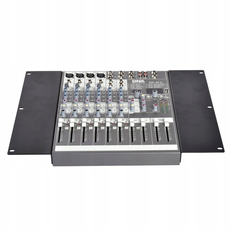 Крепления для микшера DNA ME-8FX позволяют установить его в стойку. Перила изготовлены из стали толщиной 2 мм с порошковым покрытием черного цвета. Они имеют 2 удлиненных отверстия для прикручивания ручек к смесителю и 3 удлиненных отверстия для крепления всего этого дела к направляющим корпуса. Уши для установки микшера DNA ME-8FX или других микшеров аналогичного размера с этой консолью обеспечивают безопасность вашего аудиооборудования во время хранения и транспортировки. . Это идеальное решение для музыкальных групп и мобильных диджеев, идеальное как в дороге, так и на музыкальной сцене.