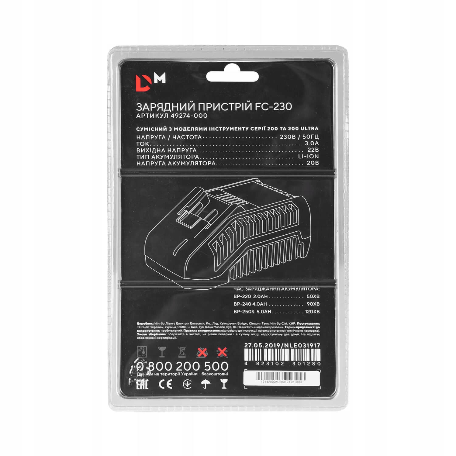 Зарядное устройство FC-230 предназначено для зарядки батарей с напряжением 20 В. Благодаря номинальному току (3 а) и емкому фильтрующим конденсаторам его можно использовать с батареями 2, 4 и 5 AH-скорость на 20% выше, чем время разряда при номинальной нагрузке. Подходит для профессионального использования.