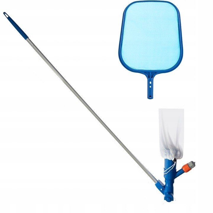 - 2 в 1 - один набор, но две практические функции. Набор включает в себя сетку для ловли более крупных загрязняющих веществ с поверхности воды бассейна и уборщика в вакуум для бассейна с водой.
