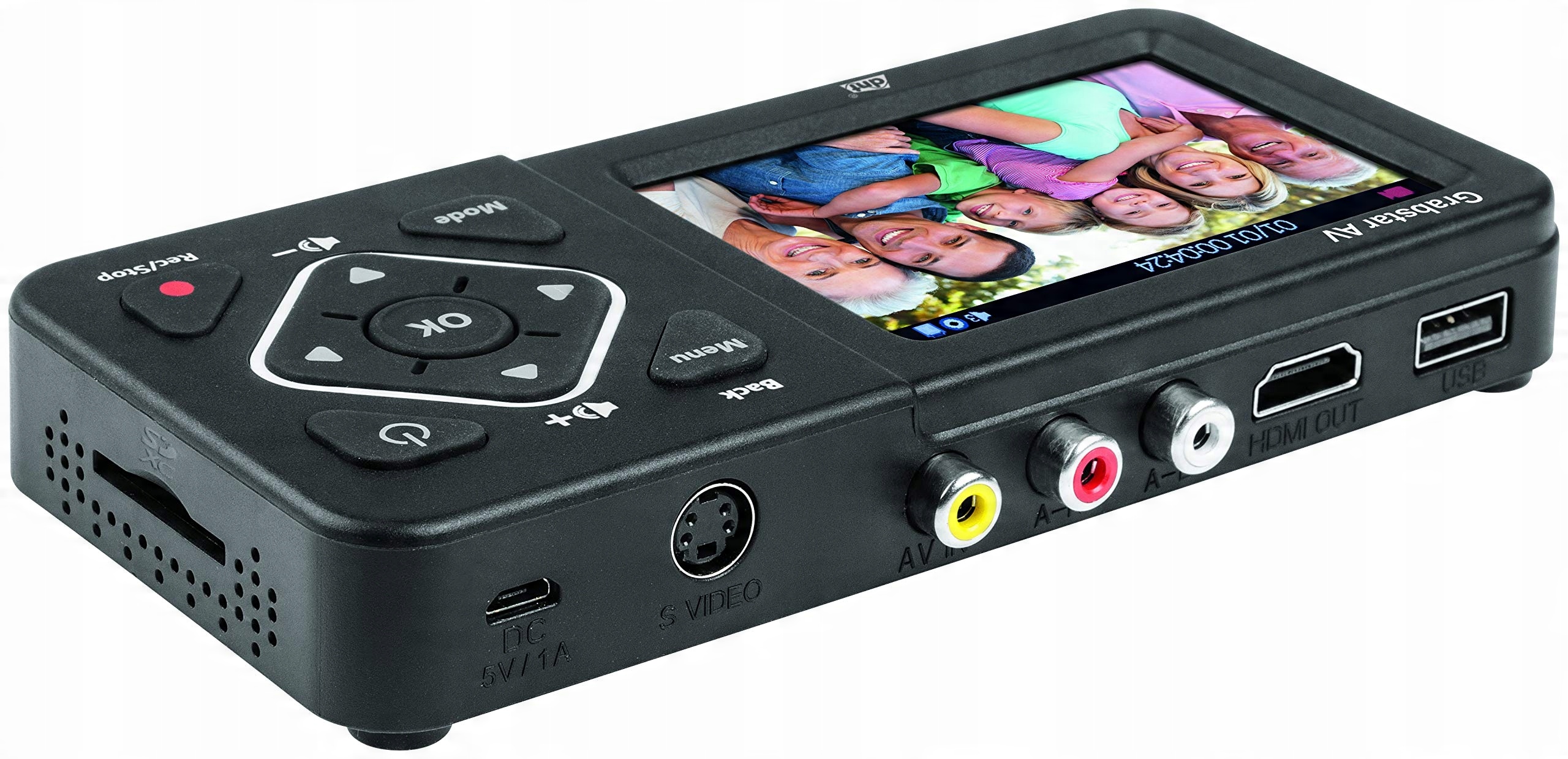 DNT Grabstar AV — это преобразователь видео, который позволяет архивировать аналоговые видеоисточники на USB- или SD-носители. Он имеет цветной дисплей диагональю 8,9 см (3,5") и встроенный динамик для воспроизведения звука. Поддерживаемые разрешения записи: 720 x 576 пикселей и 720 x 480 пикселей.