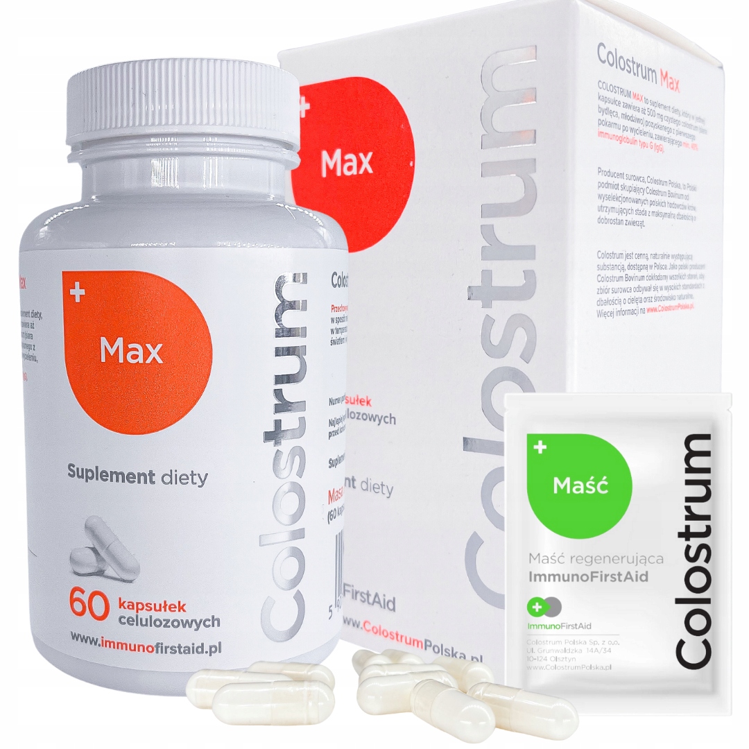Упаковка: В упаковке 60 капсул. Одна целлюлозная капсула содержит до 500 мг чистого молозива. Этот тип капсул гарантирует высокую эффективность активного вещества. Это позволяет дозе добавки достичь тонкой кишки. Здесь оно впитывается.
