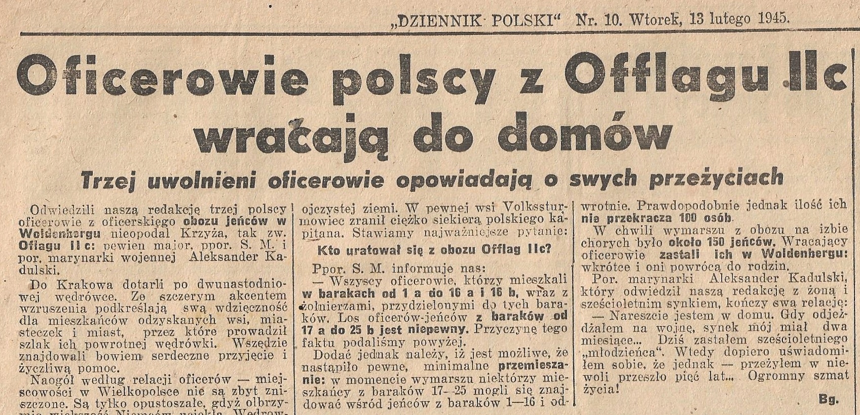 . Статья под названием «Польские офицеры из OFLAG II C возвращаются домой»