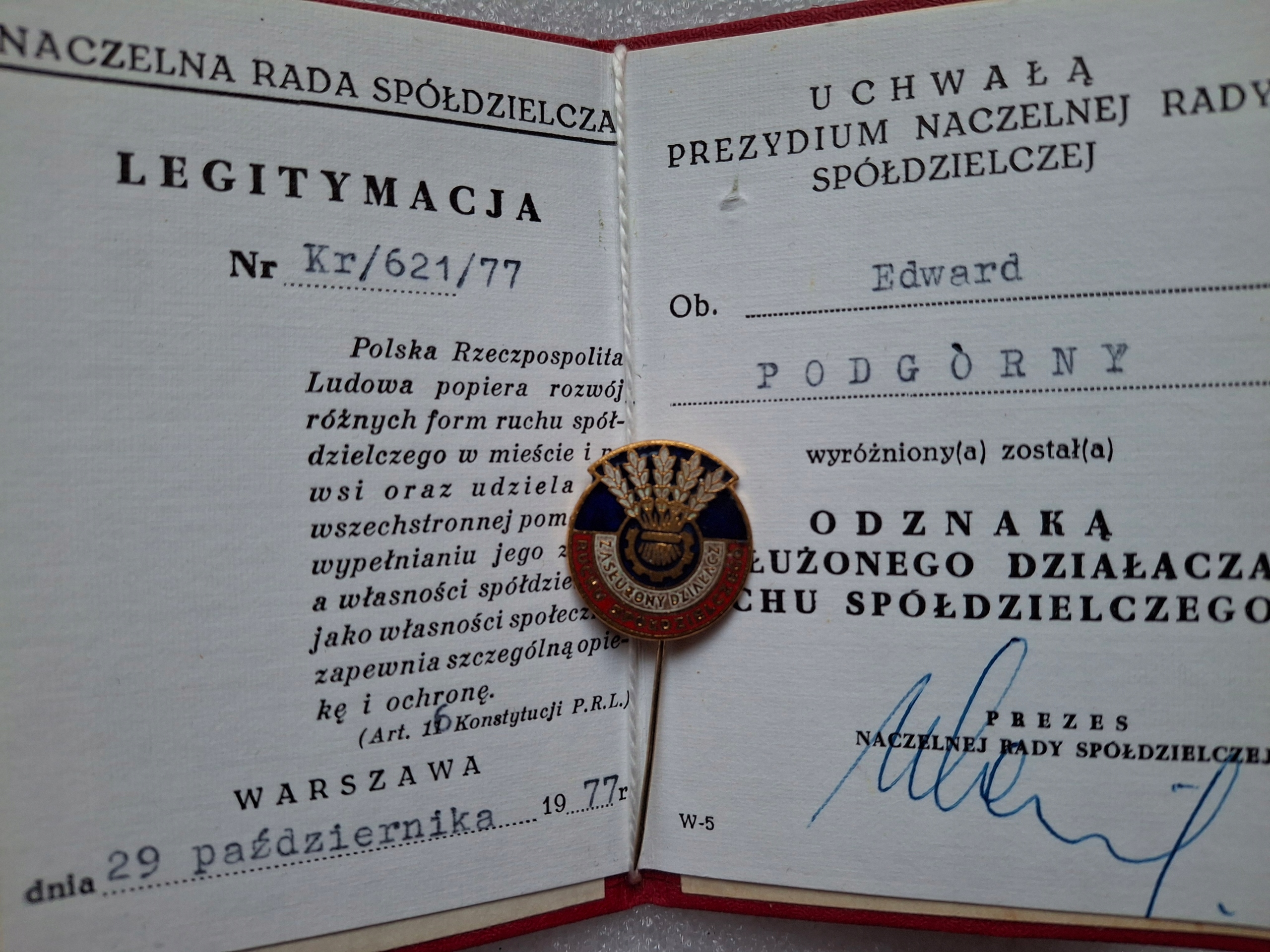 Хорошо ослабленный активист кооперативного движения+идентификационная карта