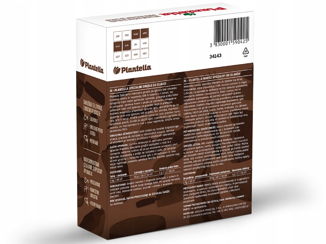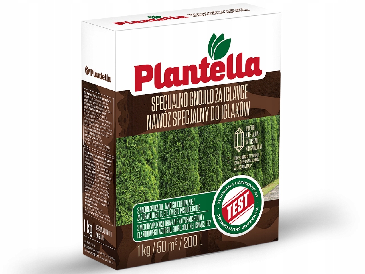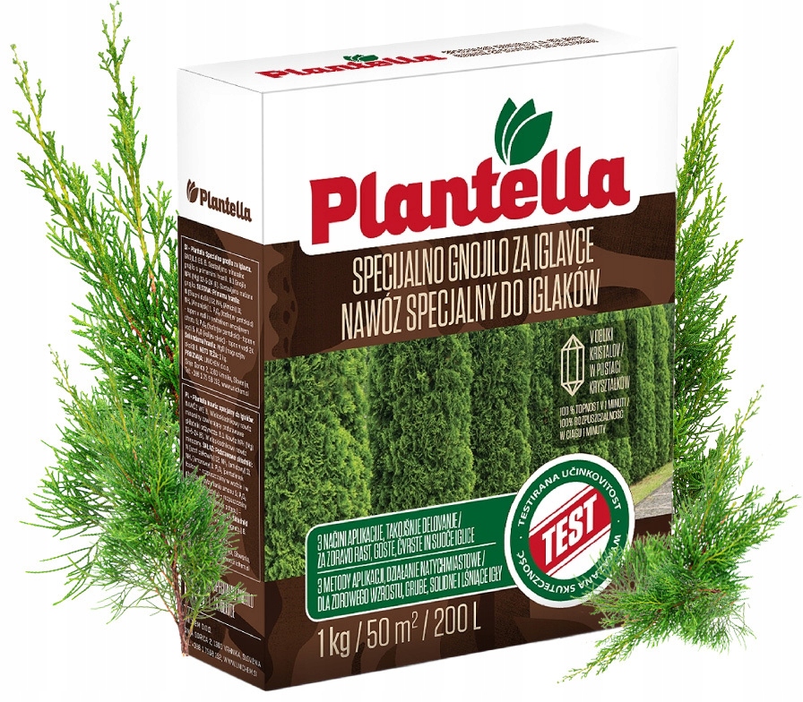 Plantella – минеральное удобрение для хвойных деревьев. Его можно использовать, например, для елей, сосен, елей, лиственниц, тисов, можжевельников и туй. Его кристаллическая формула полностью растворяется в воде за 1 минуту. Благодаря этому удобрение быстро усваивается и у вас появляется возможность выбрать удобный способ внесения. Вносить Плантеллу можно внекорнево, поливом или опрыскиванием.