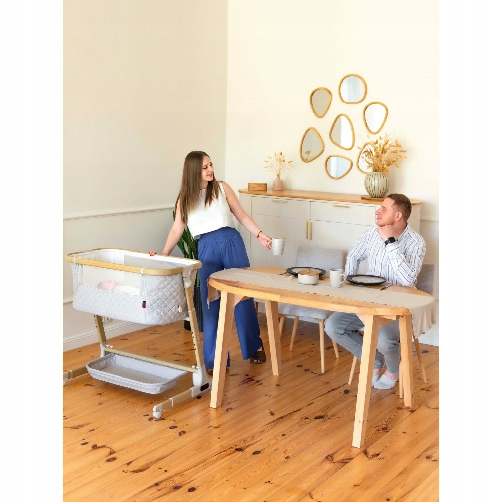 Складная боковая панель позволяет легко прикрепить кроватку Prima к родительской кровати и обеспечить максимальную близость к ребенку. Надежные ремни надежно фиксируют кроватку, а блокируемые колеса предотвращают случайное перемещение.
