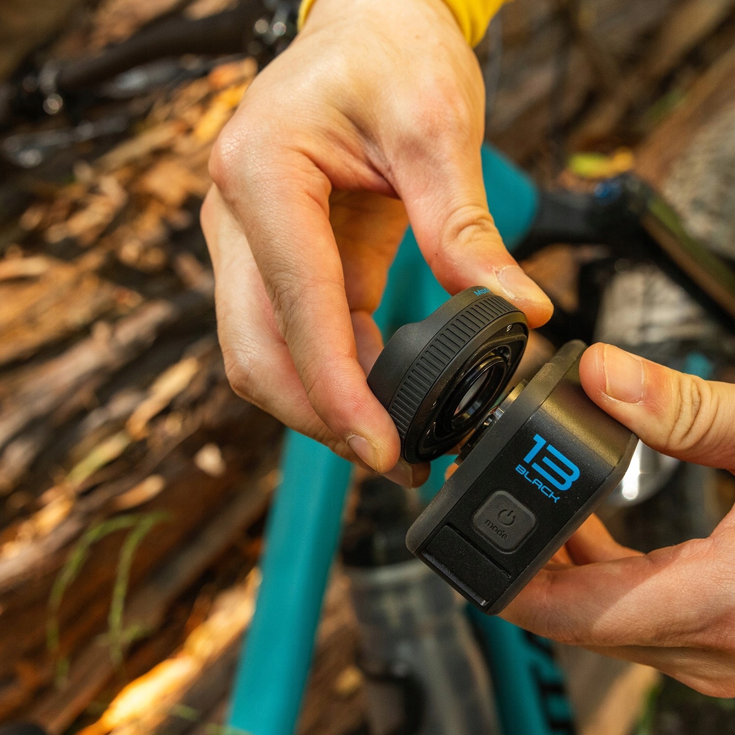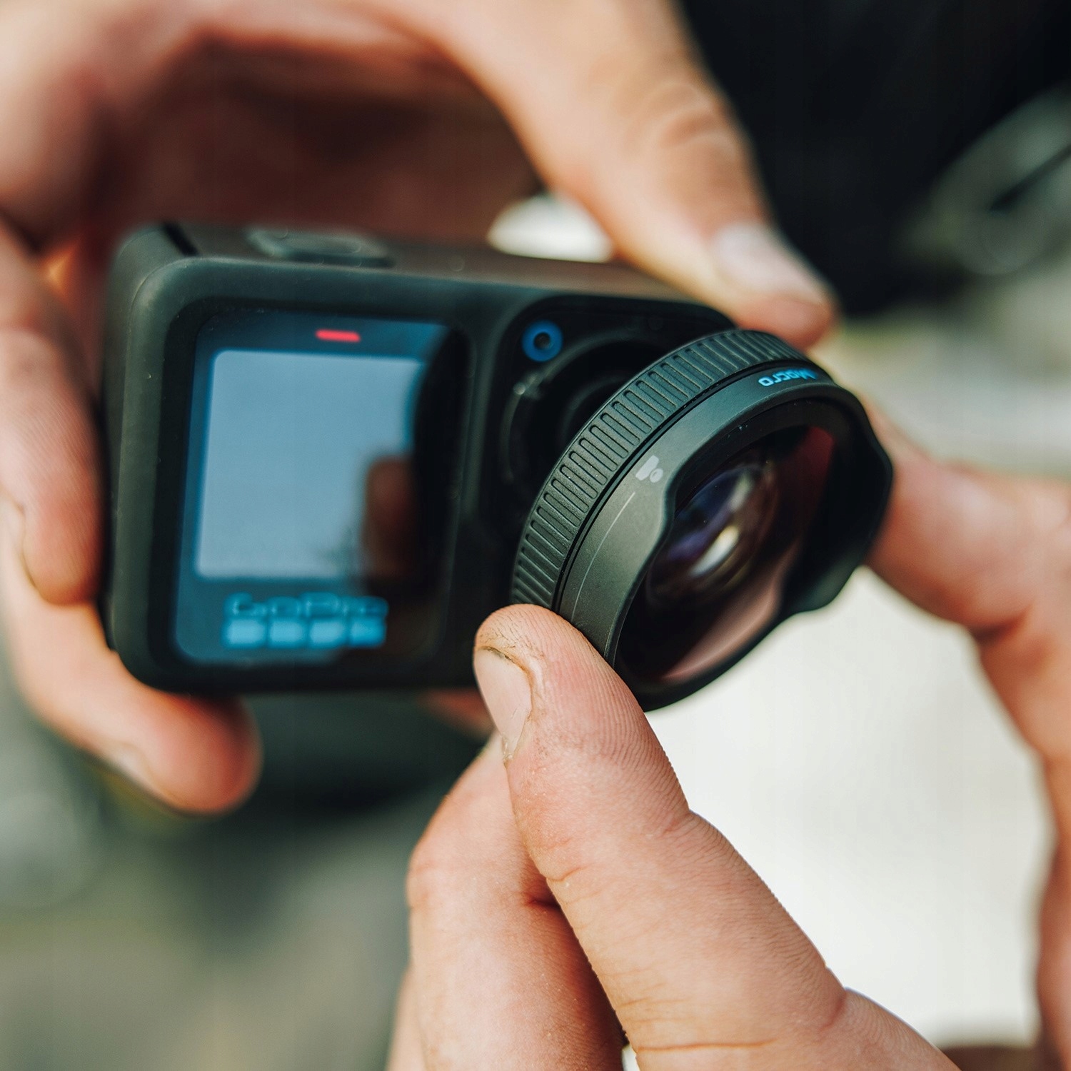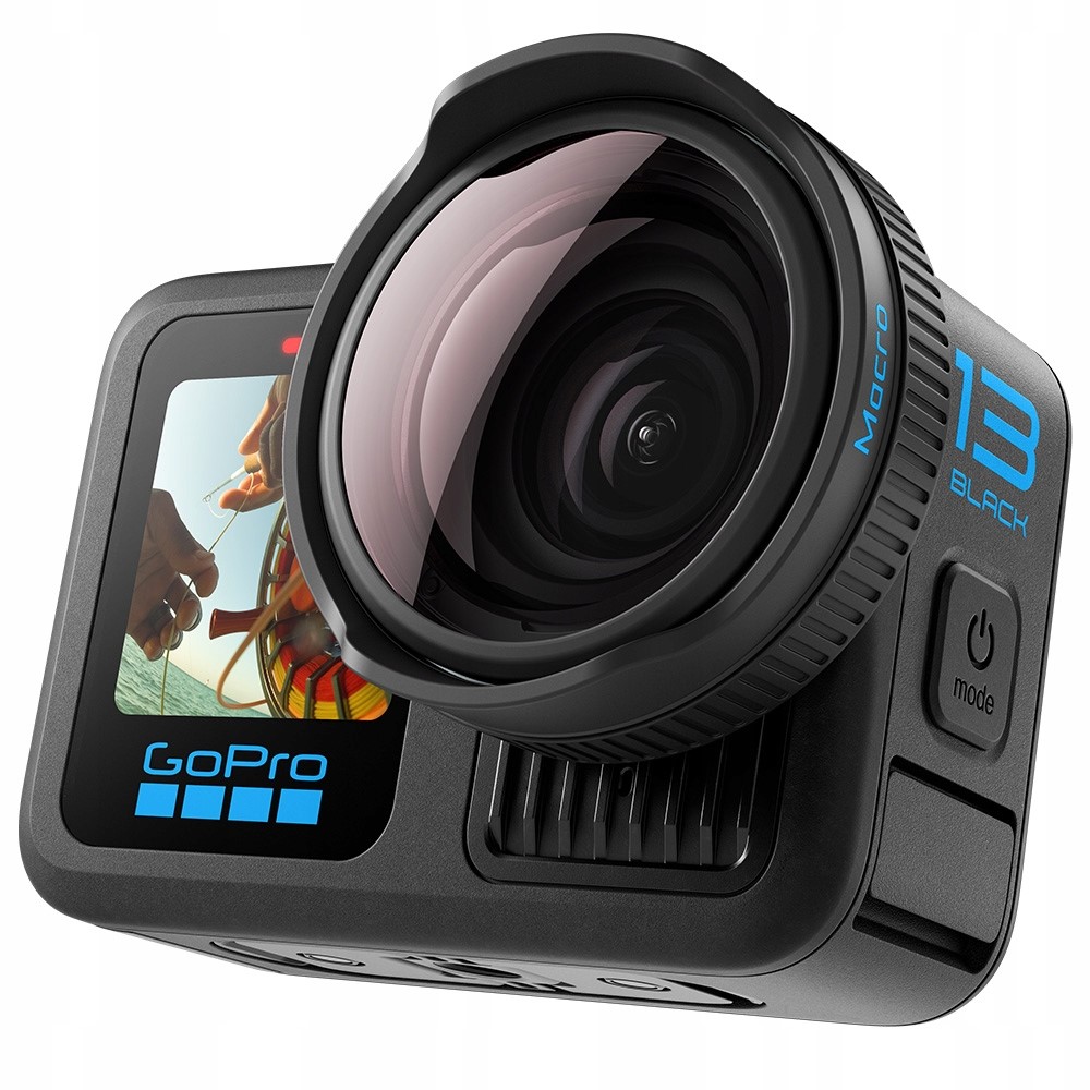 - Hero13 Black Camera автоматически распознает объектив после вставки и переключается на макро -режим. В свою очередь, после его удаления, он возвращается к стандартным настройкам.