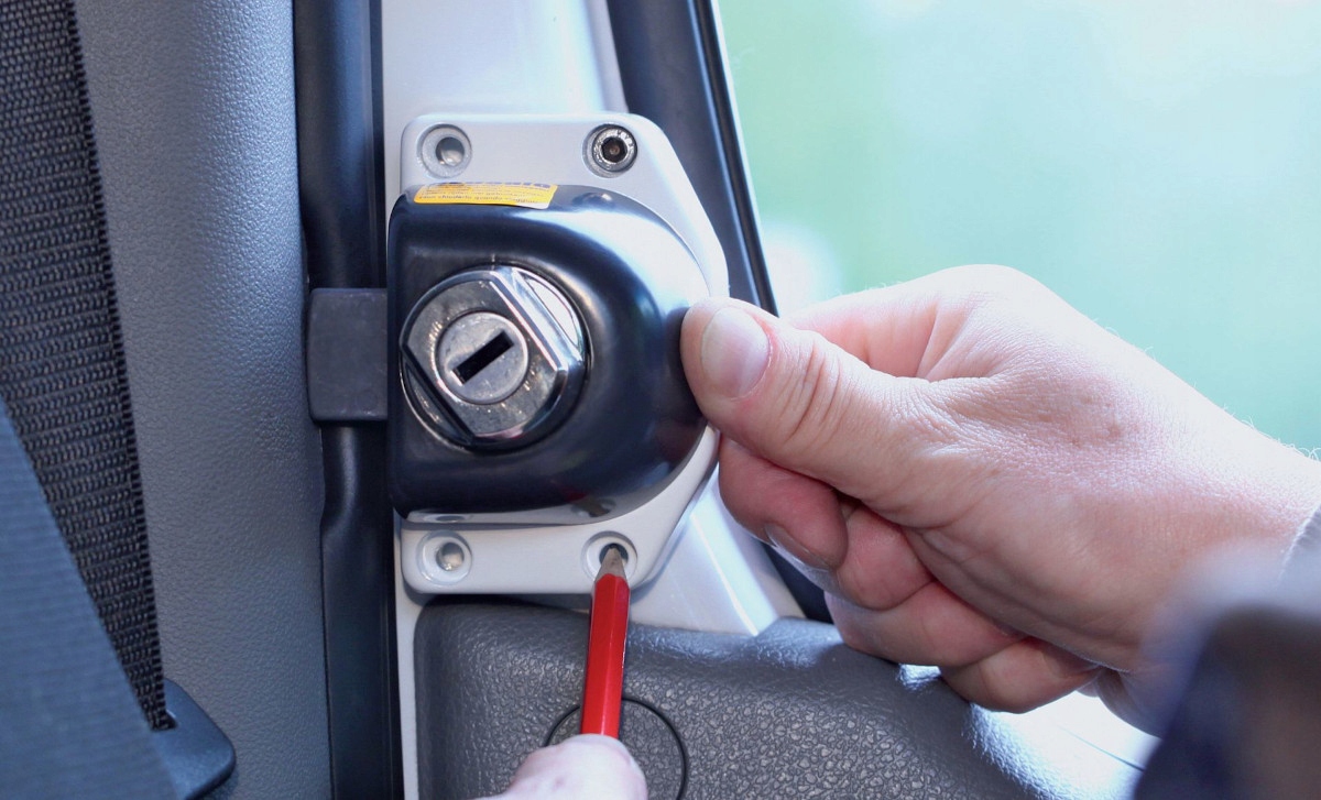 - Защищает дверь кабины водителя от взлома