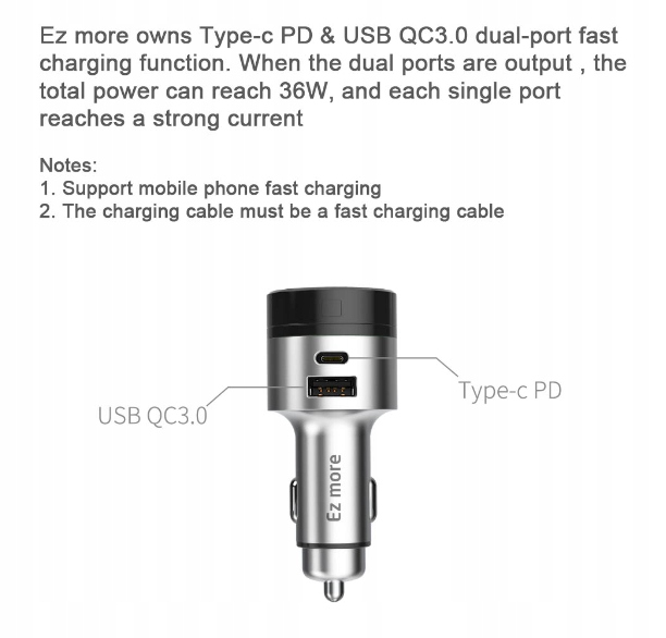 – Ez more оснащен двумя портами Type-C PD и быстрой зарядкой USB QC3.0. Когда два порта заряжаются, общая мощность может достигать 36 Вт, и каждый порт достигает сильного тока.