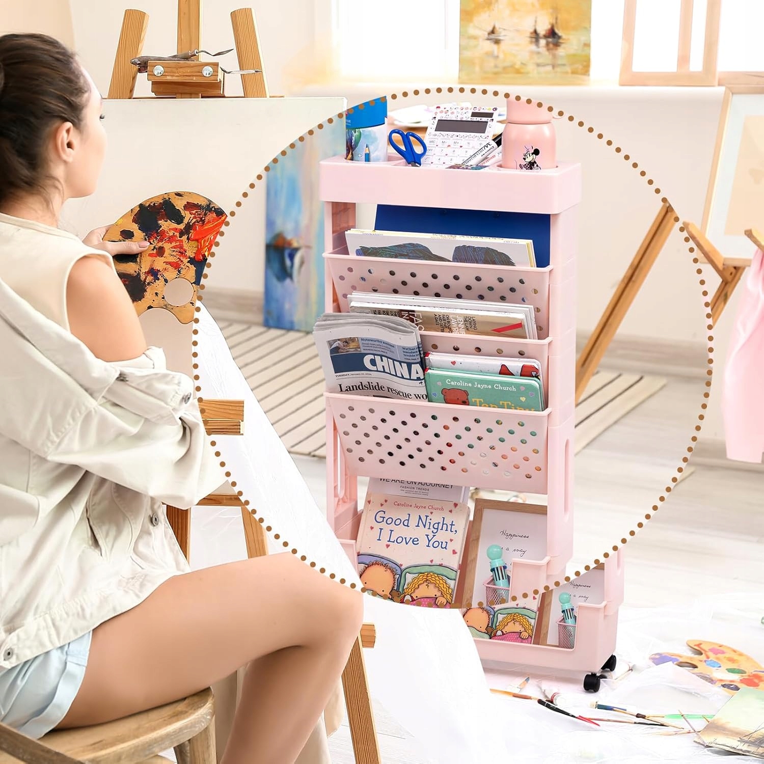 - Гибкая мобильность: 4 сильных 360 -градусных колес (2 заблокированных) помогают в легком движении или блокируете эту мобильную книжную корзину. Подвижный книжный шкаф оснащен гибкой ручкой, поэтому вы можете легко перемещать его по всему дому без каких -либо трудностей, даже в узких пространствах.