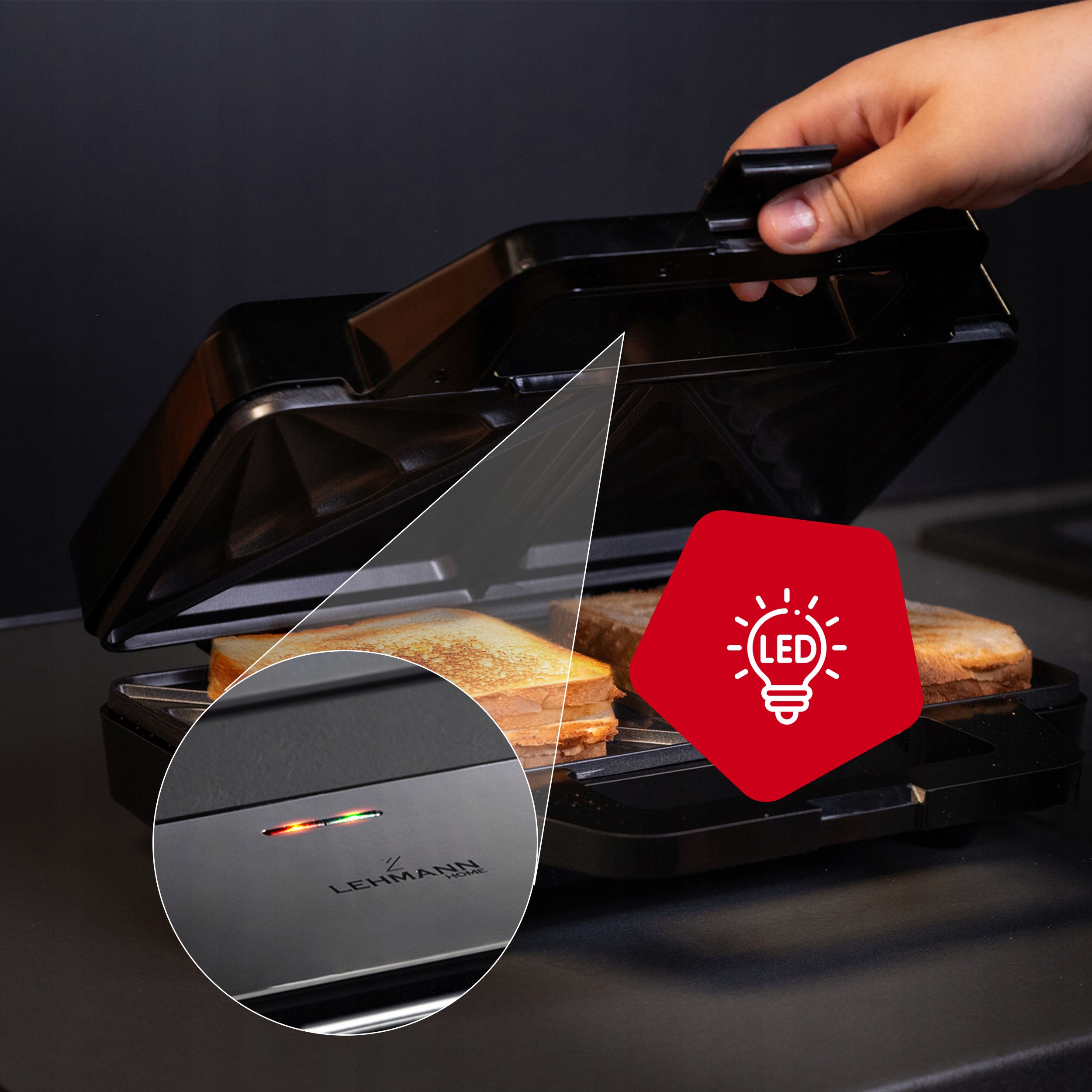 Сэндвич-тарелка в тостере Lehmann Roast 1500 позволяет приготовить хрустящие золотистые тосты за несколько минут. Это быстрая и вкусная идея для завтрака, ужина или теплого перекуса для всей семьи.