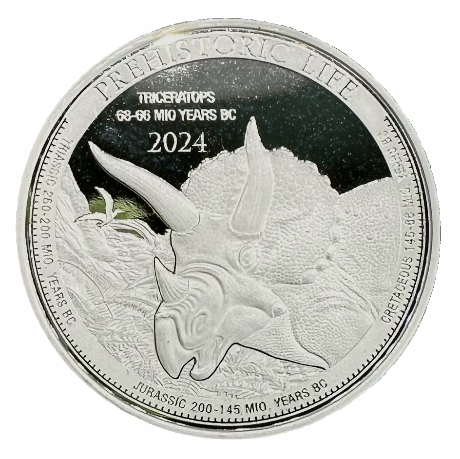 Доисторическая жизнь: трицератопс 1 серебряная унция 2024 г.
