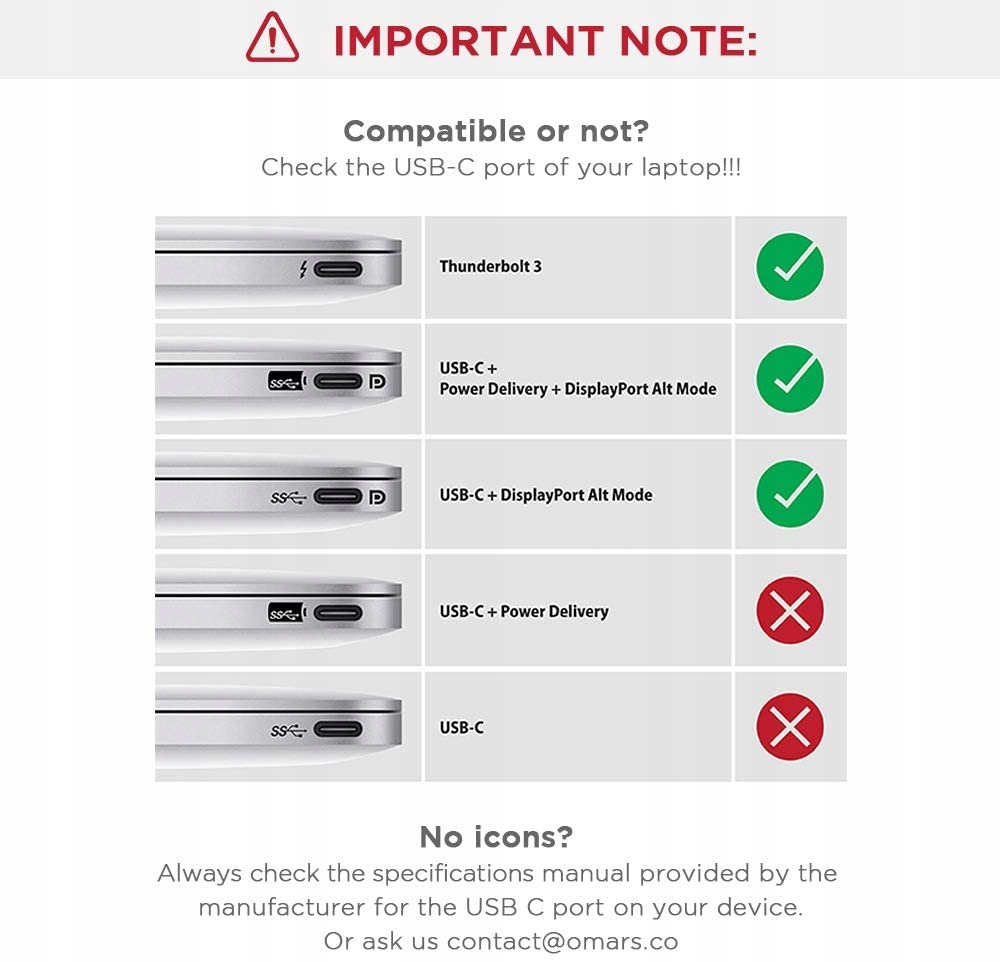 Перед покупкой убедитесь, что ваш ноутбук оснащен портами Thunderbolt 3/USB-C 3.1 Gen 2/USB-C 3.1 Gen 1 (поддержка подачи питания) для поддержки нескольких дисплеев.