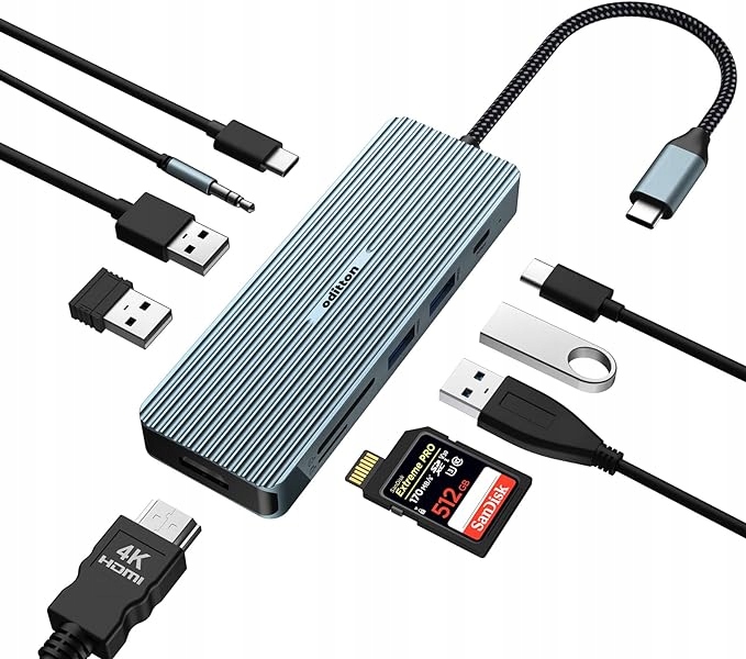 ODITTON Hub USB 3.0, док-станция 10-в-1, адаптер-концентратор USB C с 4K HDMI, 2 порта USB 3.0 типа A, порт передачи данных USB-C, 2 порта USB 2.0 типа A, SD/TF, USB C PD, стереоразъем 3,5 мм.