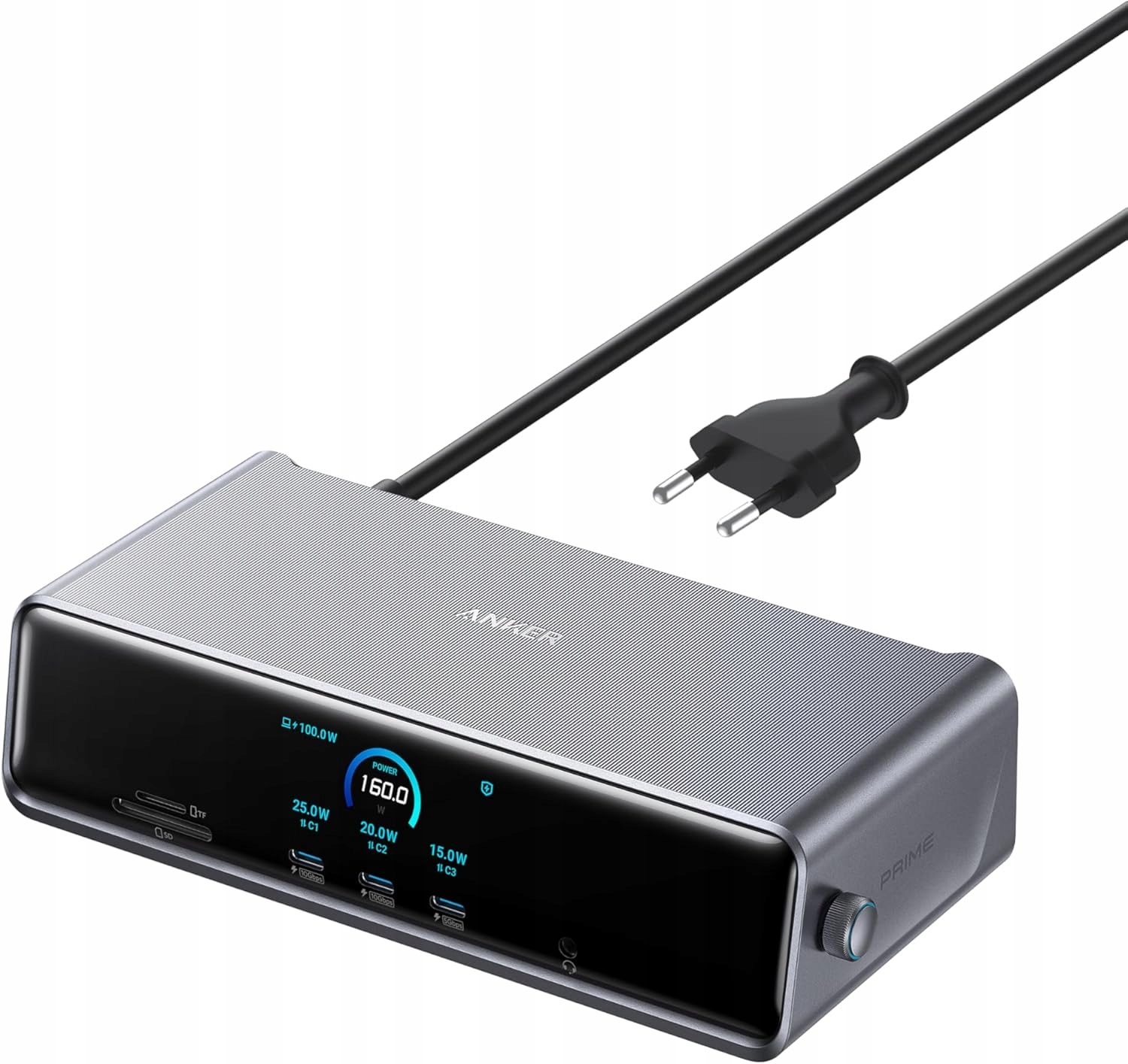 - В комплекте: док-станция Anker Prime (14 в 1, тройной дисплей, DisplayLink), кабель USB-C — USB-C 3.2 Gen 2 для восходящего порта (1 м, 10 Гбит/с), сетевая трубка длиной 1,8 м, карта безопасности с QR-кодом (может быть недоступна на польском языке). (Примечание: кабель входит в дополнительную коробку.)