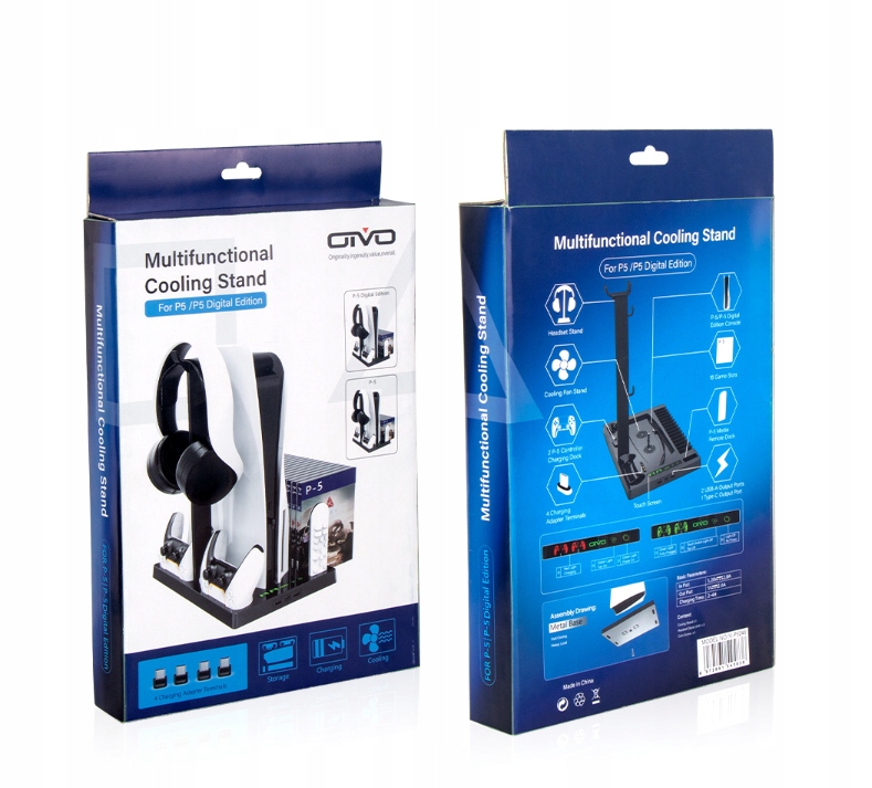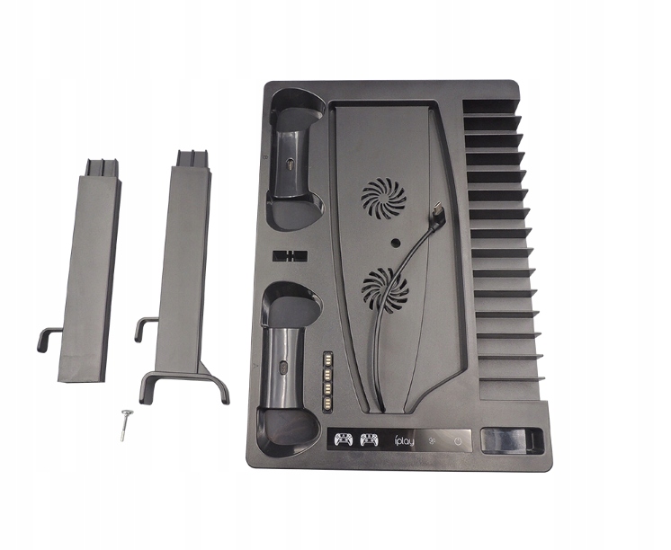 Подставка позволяет поставить консоль PlayStation 5 вертикально. Это экономит место. Подставка изготовлена из прочного пластика, поэтому ее можно использовать годами. Подставка оснащена двумя вентиляторами для охлаждения консоли. Станция имеет 2 док-станции для планшетов DualSense для их зарядки, держатель для наушников и подставку на 15 игр. Кроме того, он оснащен 2 портами USB и 1 портом USB-C для зарядки и передачи данных.