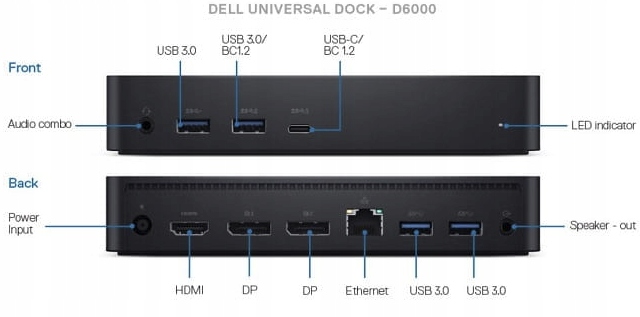 На первый взгляд, когда вы смотрите на станцию Dell Universal Dock D6000-EU, может сложиться впечатление, что она не богато оснащена. Однако достаточно углубиться в технические характеристики, чтобы увидеть, что несмотря на небольшие габариты, он является серьезным конкурентом в этом ценовом классе. Вы можете использовать четыре входа USB 3.0, один вход USB 3.1 типа C и RJ-45 (LAN).
