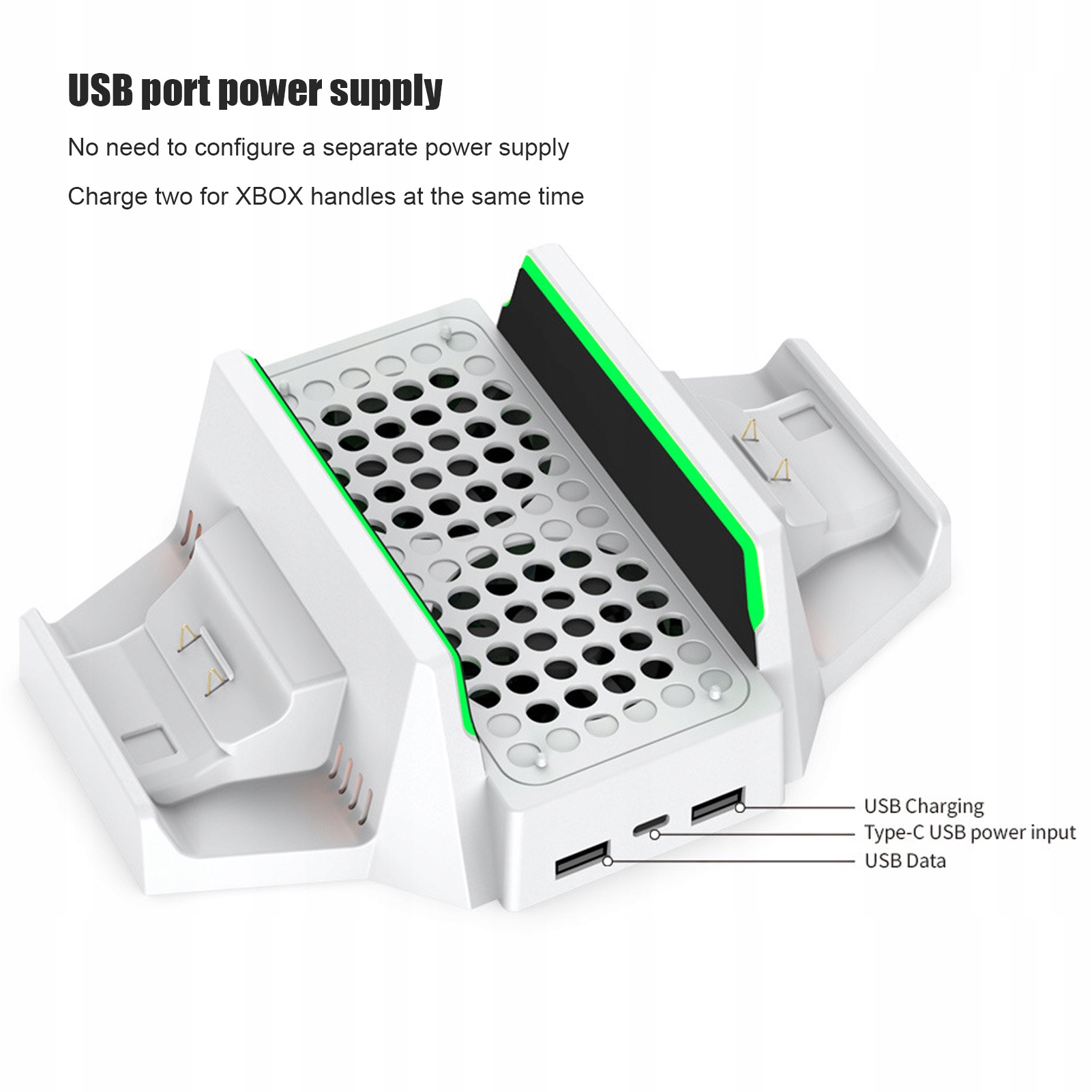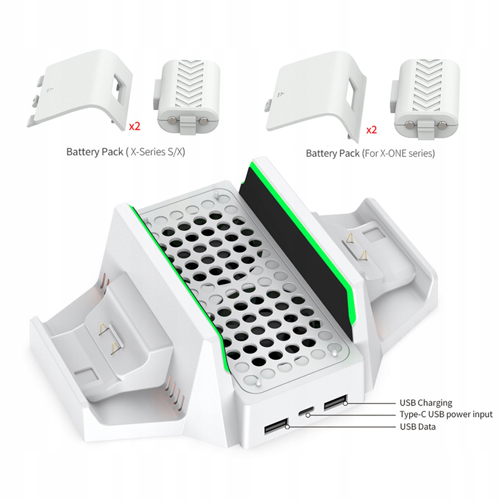 4 . ПИТАНИЕ ПО USB-ПОРТУ: Охлаждающая подставка игровой консоли питается от USB-порта XBOX Series S, поэтому нет необходимости настраивать отдельный источник питания. Оснащен двойной батареей емкостью 800 нАч.