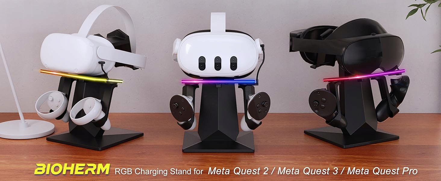 [Множественные адаптации моделей] — наша зарядная док-станция с RGB-подсветкой совместима с Meta Quest 2/Quest 3S/Quest 3/Quest Pro. Разработанный специально для геймеров Meta Quset, он делает зарядку хоста быстрее и проще.