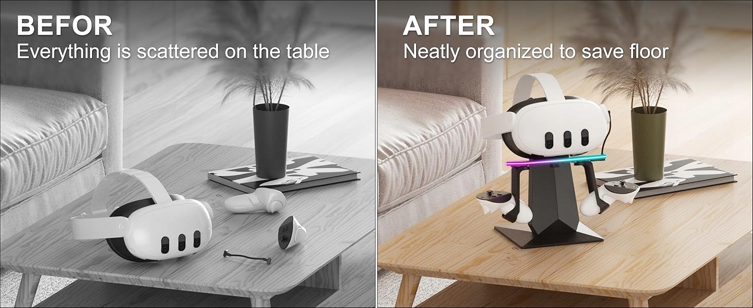 [Тихая игровая среда] — док-станция для зарядки помогает организовать игровые устройства, сохраняя игровую зону в чистоте и порядке. Интегрируя функции зарядки и хранения устройств, он гарантирует, что ваши VR-устройства и периферийные аксессуары будут аккуратно организованы, что делает игровую среду более чистой и удобной. Классные аксессуары для задач Oculus.