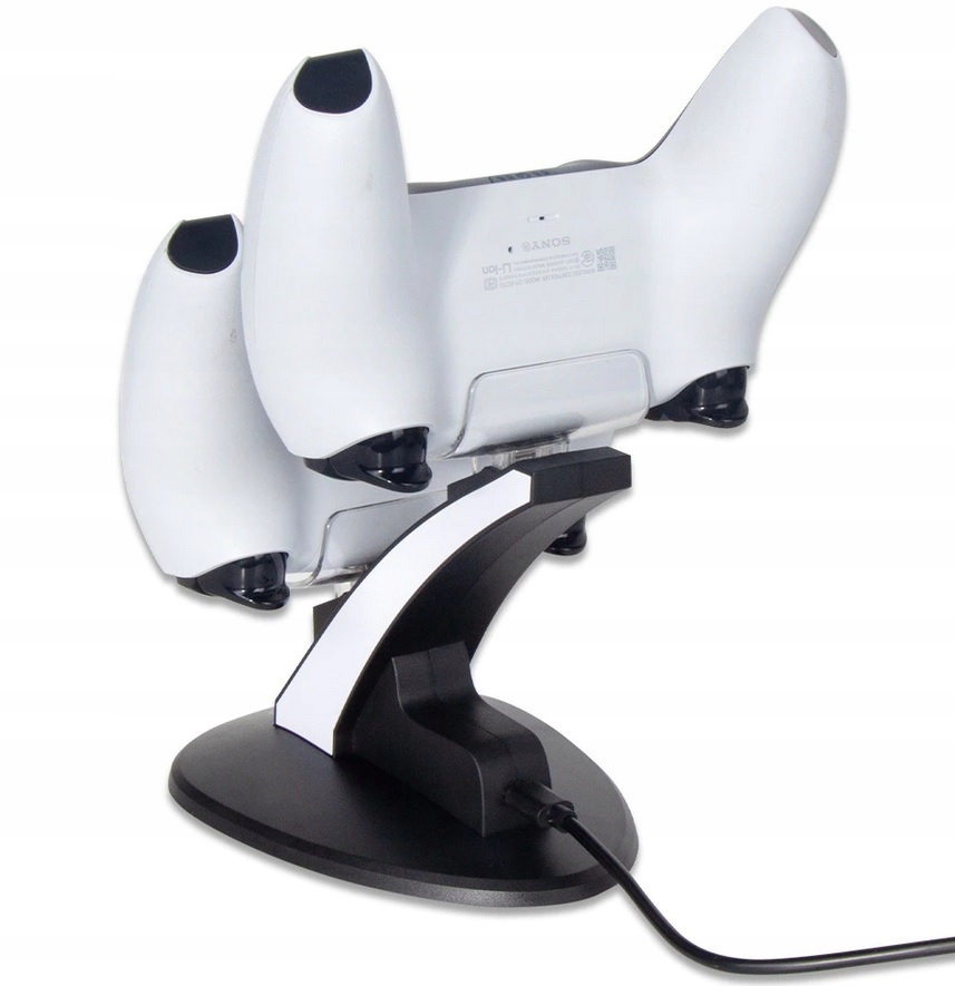 Станция идеально сбалансирована, поэтому вам не придется беспокоиться о ее опрокидывании, независимо от того, подключаете ли вы к ней один или два планшета. Форма ручек идеально соответствует форме планшета DualSense, благодаря чему он будет устойчиво лежать на станции. В нижней части зарядного устройства имеются четыре ножки из мягкого материала, поэтому они не повреждают поверхность, на которой стоят. Стильный внешний вид станции идеально сочетается с дизайном консоли.