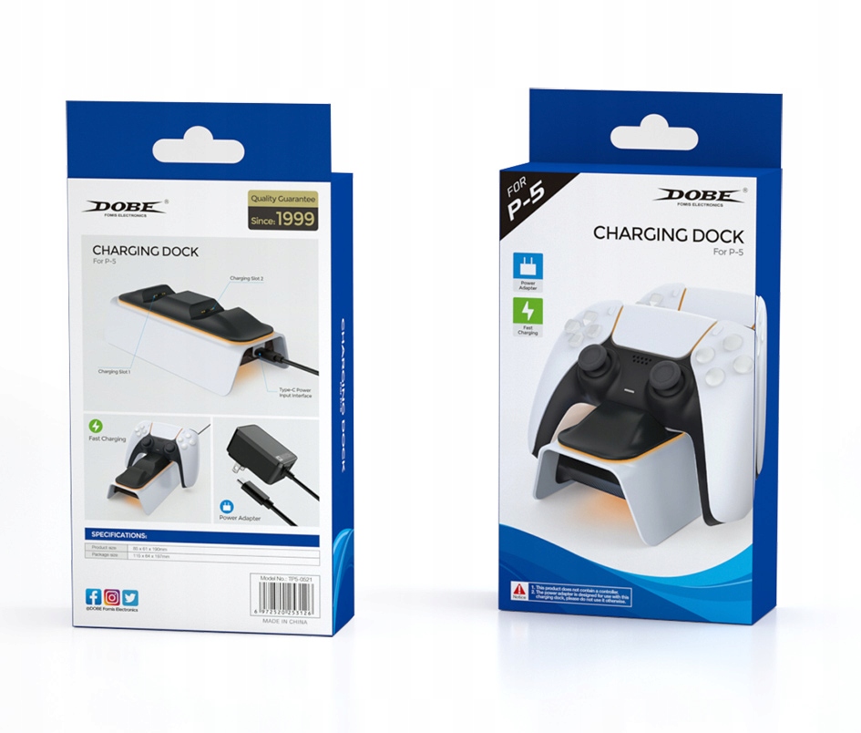 Зарядная станция Dobe DualSense PS5 с двумя планшетами, модель TP5-0521B.