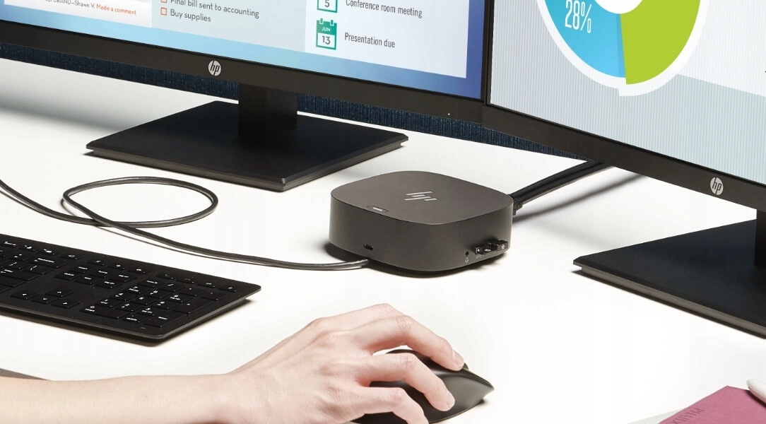 Док-станция HP USB-C G5 разработана с учетом максимальной совместимости и эффективности. Благодаря интерфейсу USB-C он работает не только с ноутбуками HP, но и с устройствами других брендов, таких как Apple, Dell или Lenovo, которые имеют порты USB-C или Thunderbolt. Это устраняет необходимость в использовании нескольких адаптеров и гарантирует перспективные инвестиции независимо от парка вашего оборудования. Всего одного кабеля USB-C достаточно, чтобы подключить к ноутбуку до трех мониторов (два DisplayPort 1.4 и один HDMI 2.0) и получить полный набор необходимых портов: 4x USB-A 3.2 Gen 1, выделенный порт USB-C на передней панели, RJ-45 для стабильного Интернета и комбинированный аудиоразъем (мини-джек 3,5 мм).