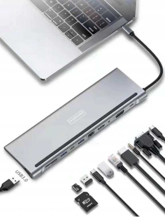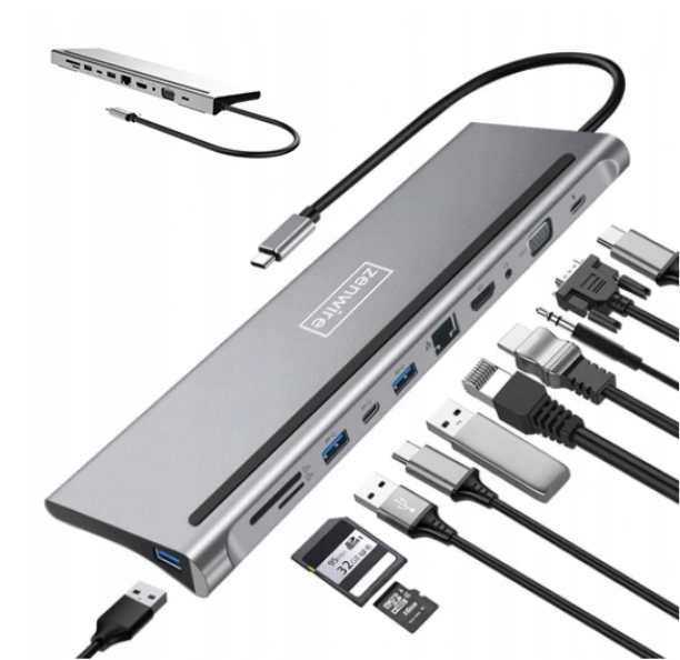 АДАПТЕР-концентратор 11IN1 ZENWIRE HDMI 4K, VGA, 3x USB 3.0, RJ-45 (Fast Ethernet), mini JACK, USB-C Передача данных, подача питания