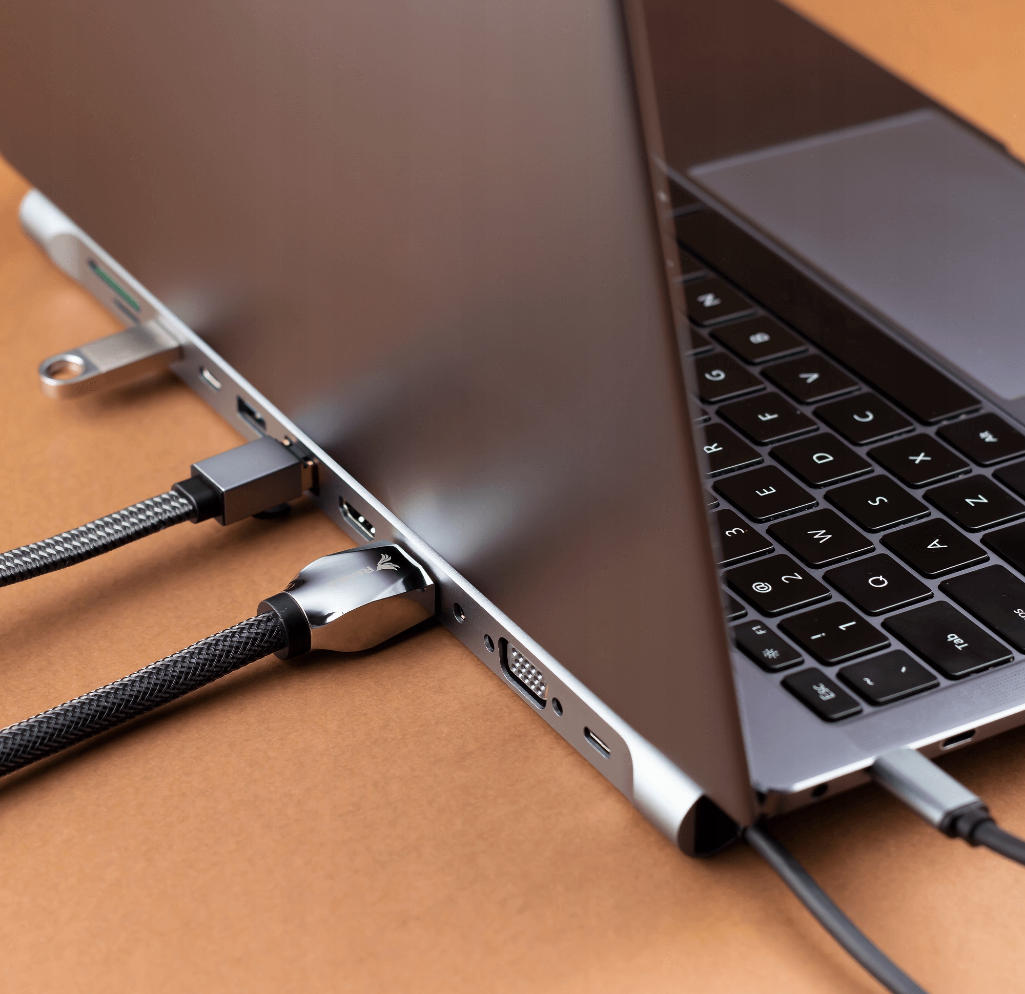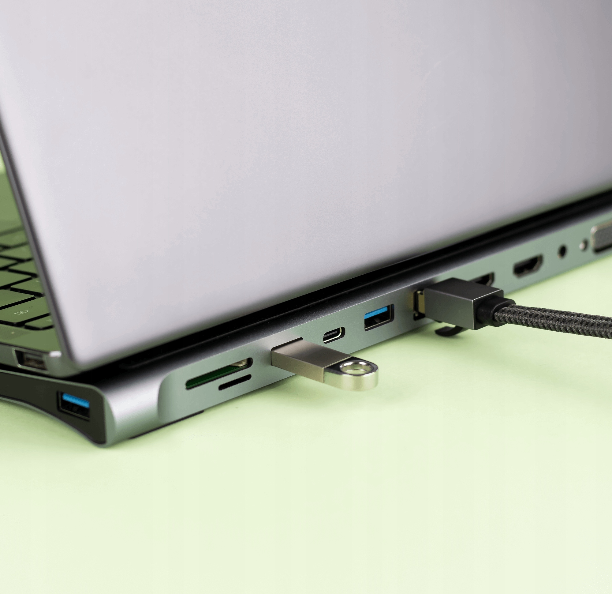 RHUB91C от Reagle — док-станция с разъемом USB-C, которая поднимет вашу работу на совершенно другой уровень. Благодаря ему вы сможете превратить свой ультрабук в настольный компьютер, не потеряв при этом места на столе. Репликатор имеет 11 портов, а его тринадцатый порт можно использовать в качестве подставки для ноутбука. Вам нужно подключить принтер, жесткий диск, мышь, наушники, проводной интернет и три монитора? С нашей док-станцией вы можете использовать эти устройства одновременно!