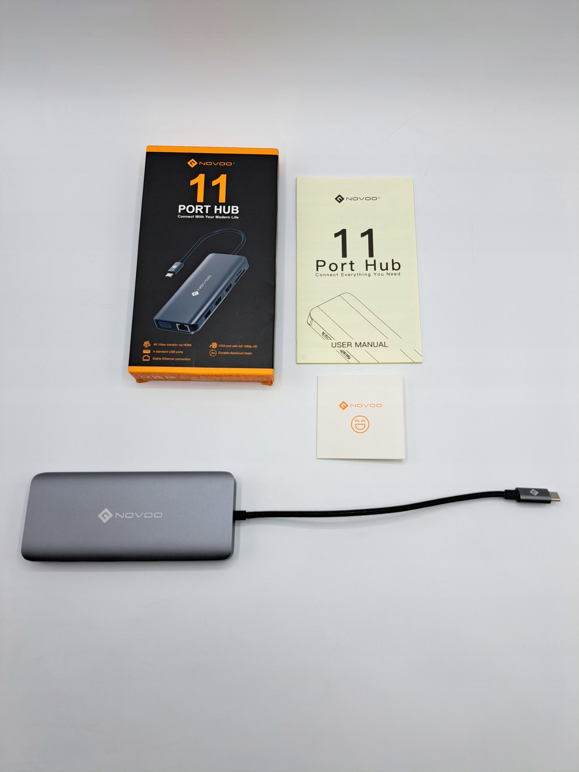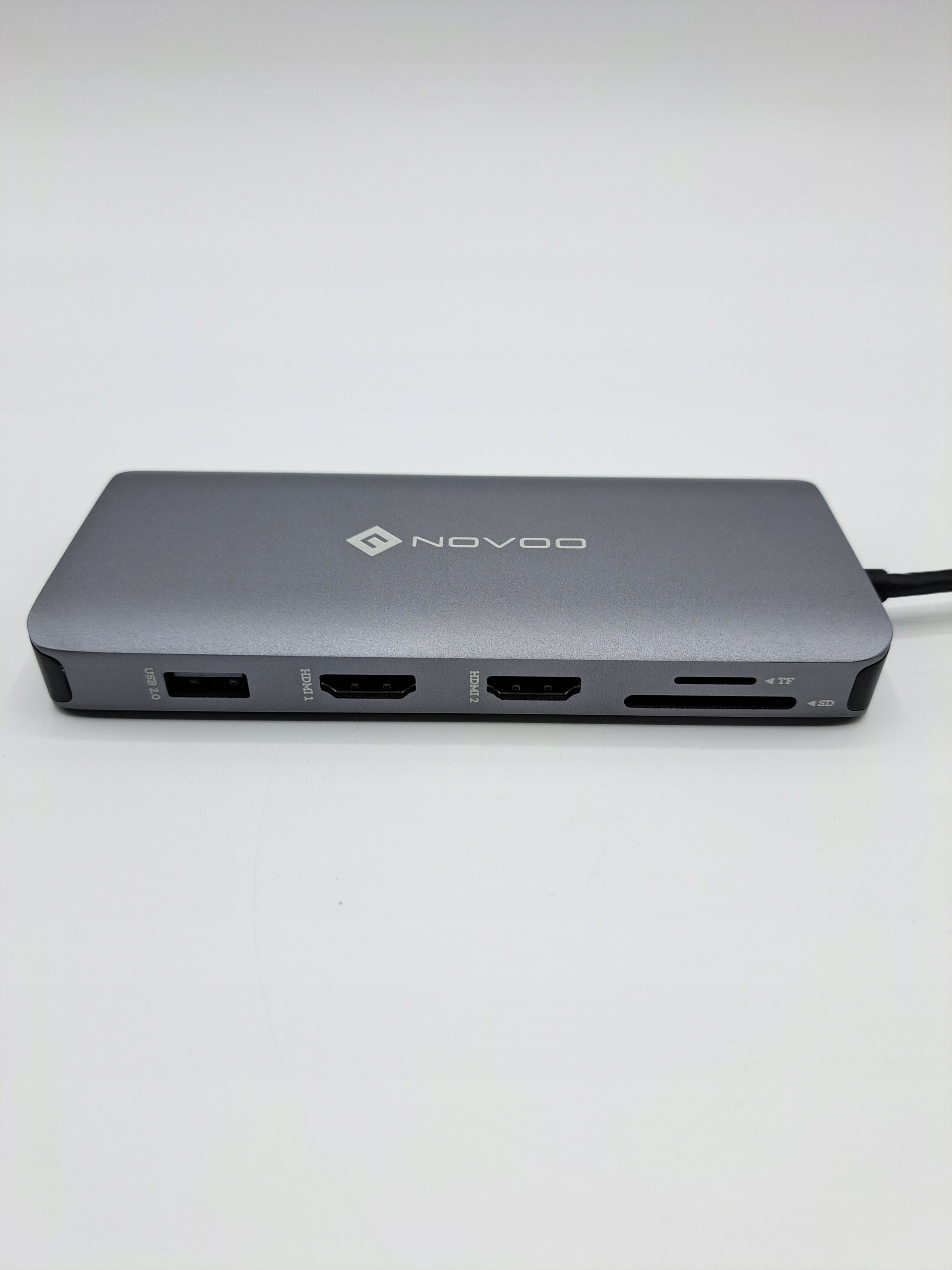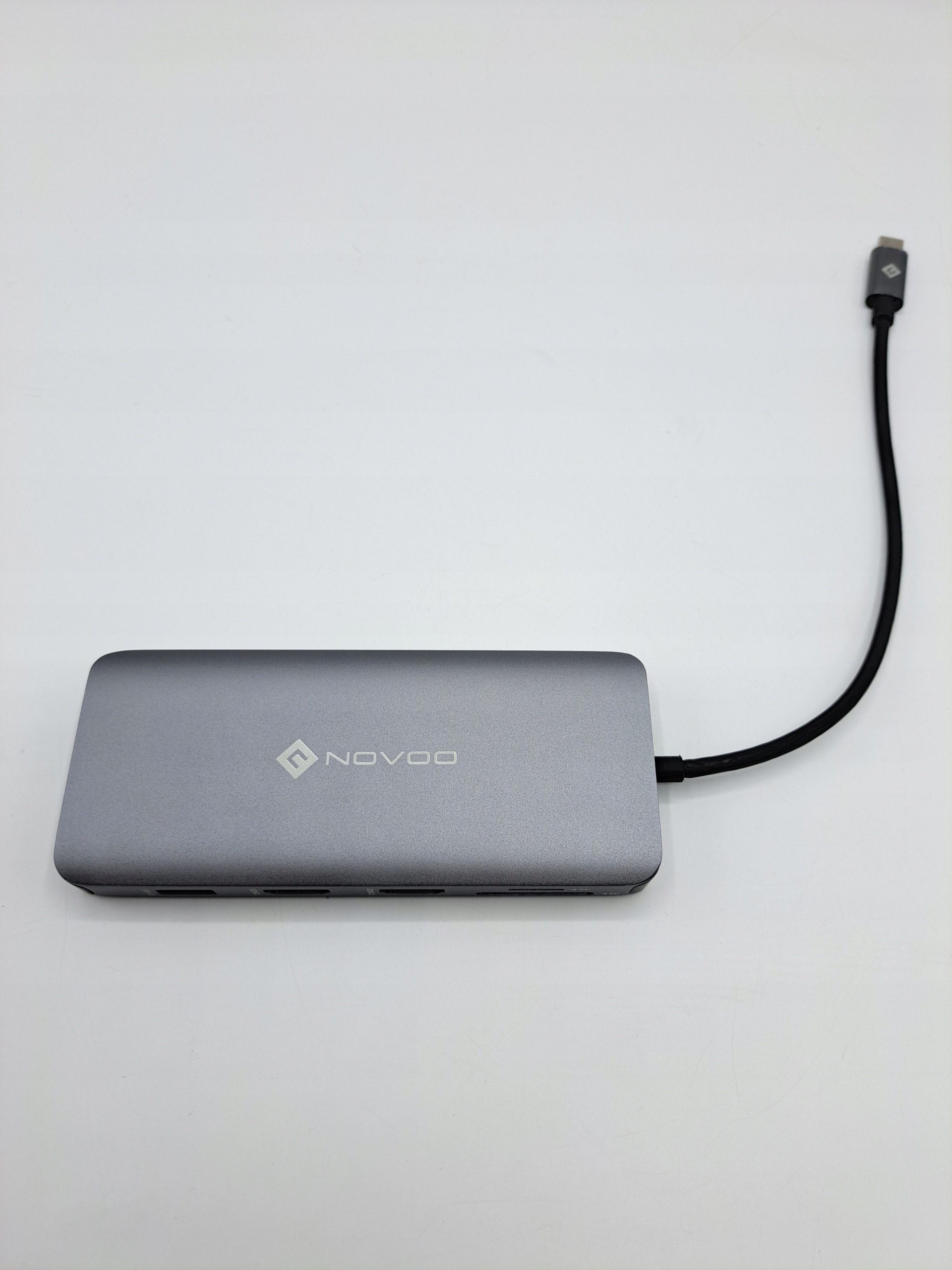 NOVOO 12in1 HUB USB-C: оснащена 1 гигабитным разъемом RJ45 Ethernet, 2 x 4K HDMI (двойной монитор), 1 x 1080P VGA, 1 x блок питания 100 Вт, 2 x порта USB 3.0, 2 x порта USB 2.0, 1 x устройство чтения карт SD/TF, 1 x 3,5-мм аудиоразъем/разъем для микрофона .
