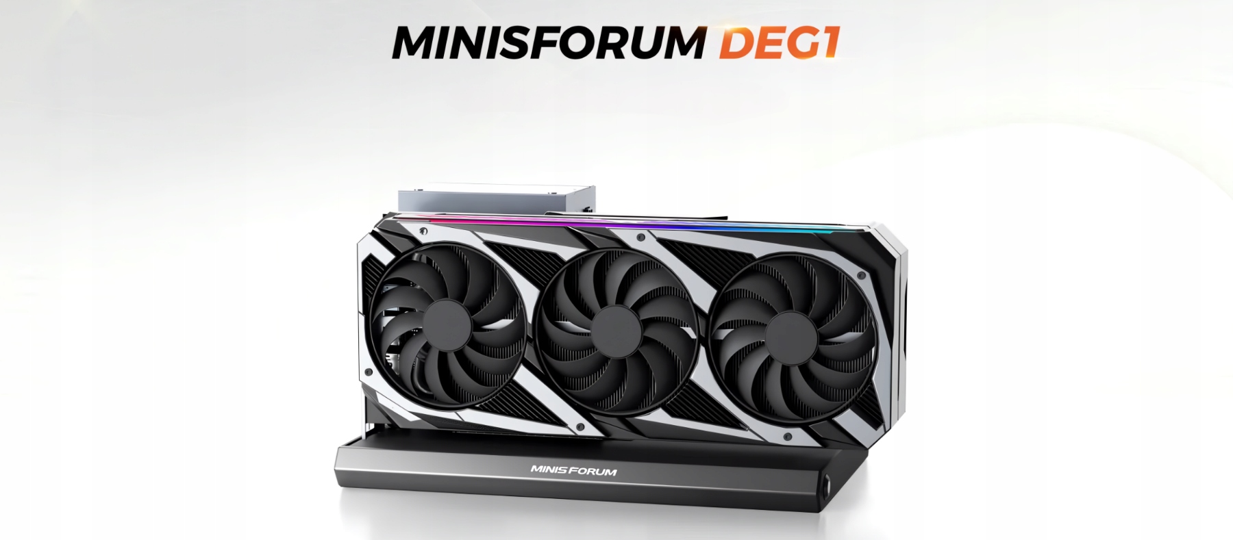 MINISFORUM DEG1 — это док-станция eGPU, позволяющая установить любую видеокарту. DEG1 не имеет встроенного блока питания (БП). Вместо этого MINISFORUM оснащен 24-контактным разъемом для подключения блоков питания ATX или SFX.