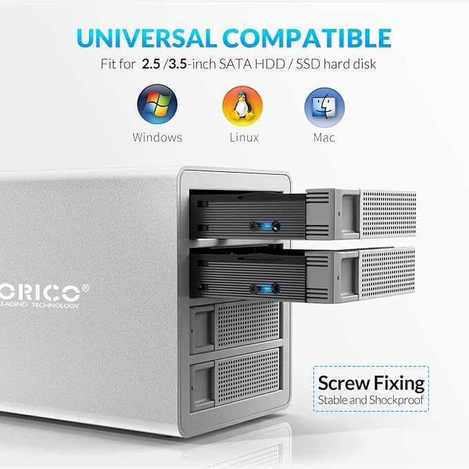 Док-станция ORICO с 4 отсеками для 2,5/3,5-дюймовых жестких дисков SATA HDD/SSD, корпус для жесткого диска с USB 3.0 на SATA III, емкость 64 ТБ, серебристый цвет