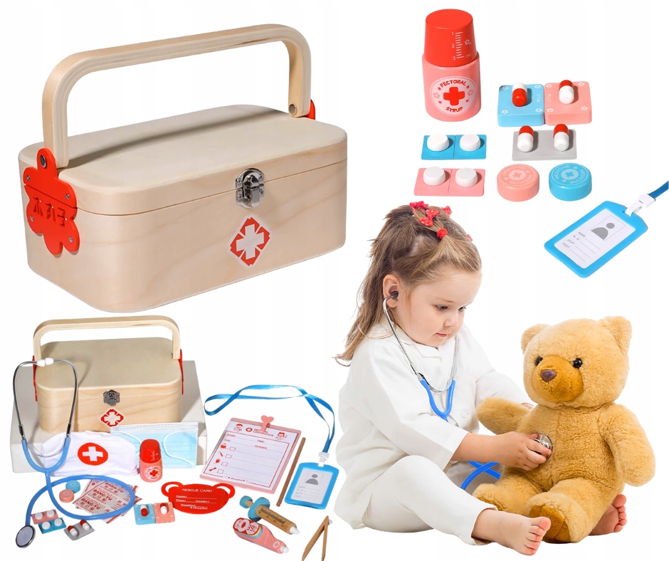 МАЛЕНЬКИЙ ДЕРЕВЯННЫЙ НАБОР ДОКТОРА ДЛЯ ДЕТЕЙ